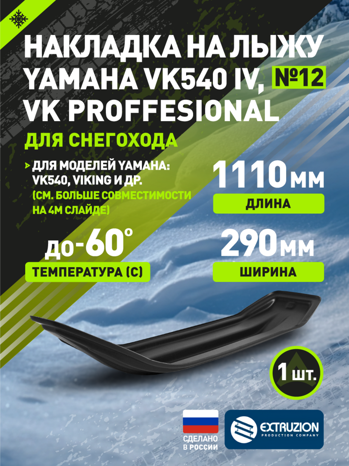 Точное соответствие и эффективность. Специально разработана для моделей Yamaha VK540 IV и VK Professional Идеальная посадка на штатные лыжи снегоходов Yamaha Улучшает скольжение и снижает сопротивление движению