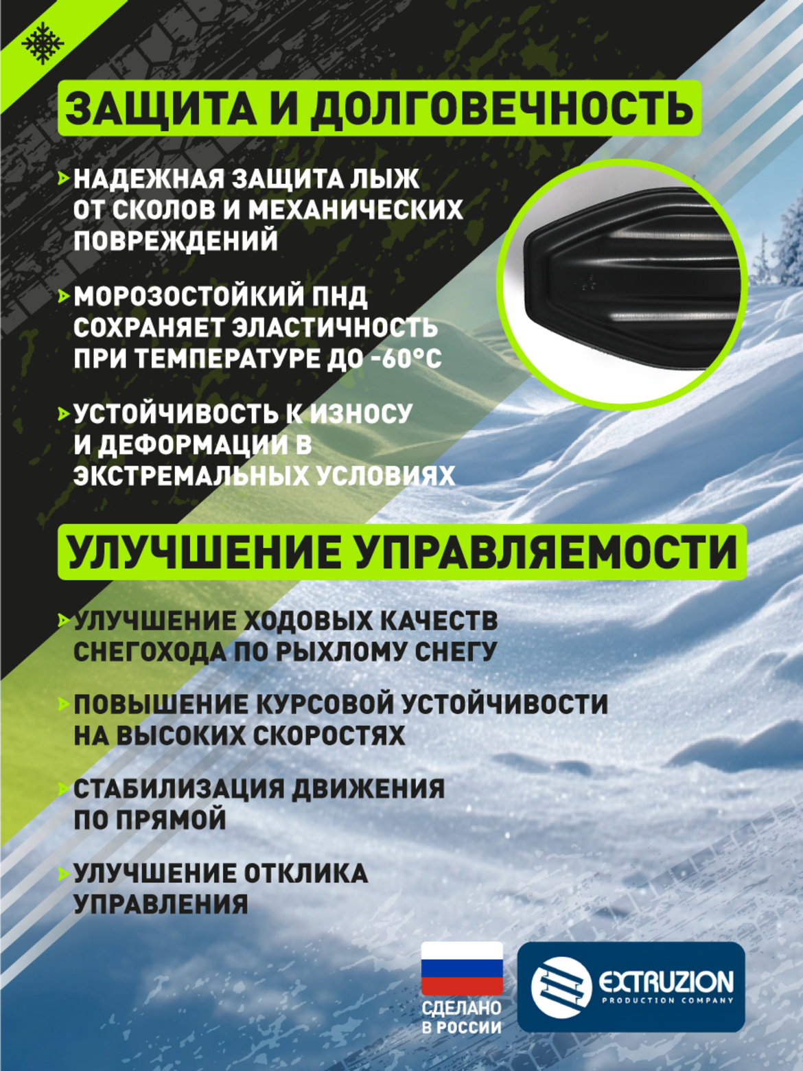 • Уменьшение износа оригинальных лыж и элементов подвески