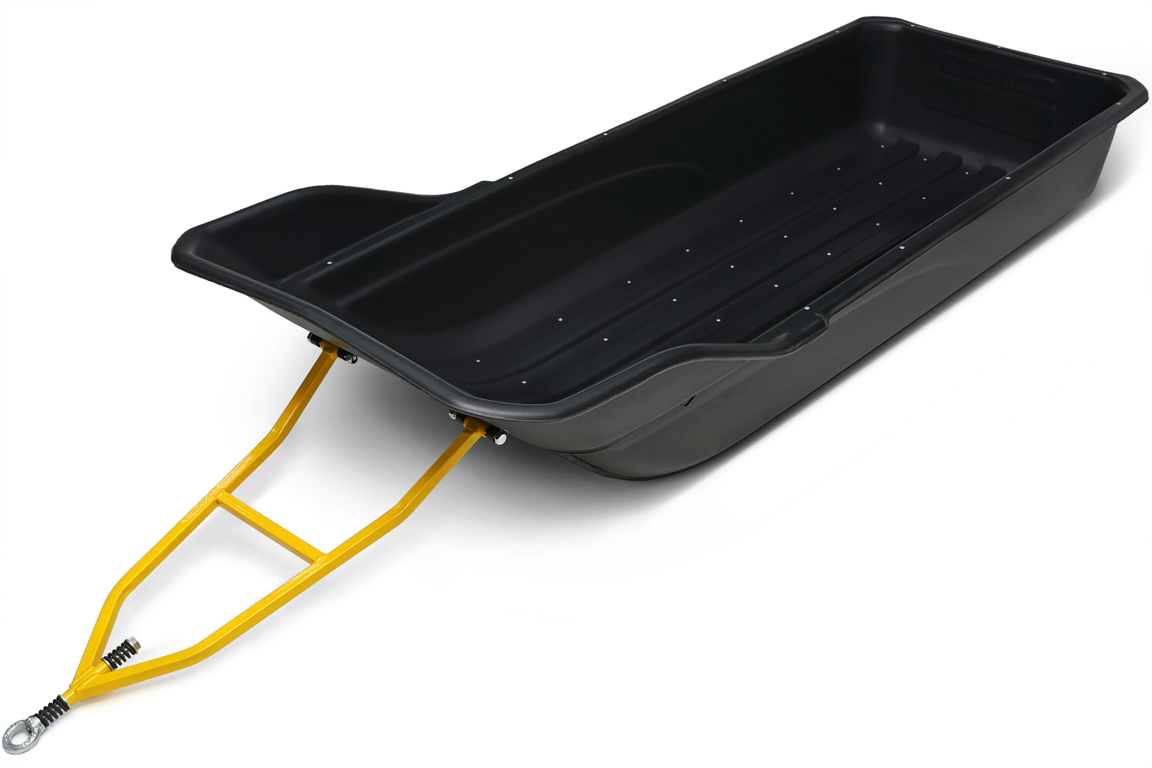 Крупногабаритные сани-прицеп для профессионального использования с снегоходами и мотобуксировщиками. Увеличенная длина 2100 мм обеспечивает повышенную вместимость для перевозки объемных грузов. Изготовлены из сверхпрочного ПНД с УФ-стабилизацией. Комплектуются сцепным устройством, стропами обвязки и накладными полозьями для лучшего скольжения и дополнительной защиты днища.