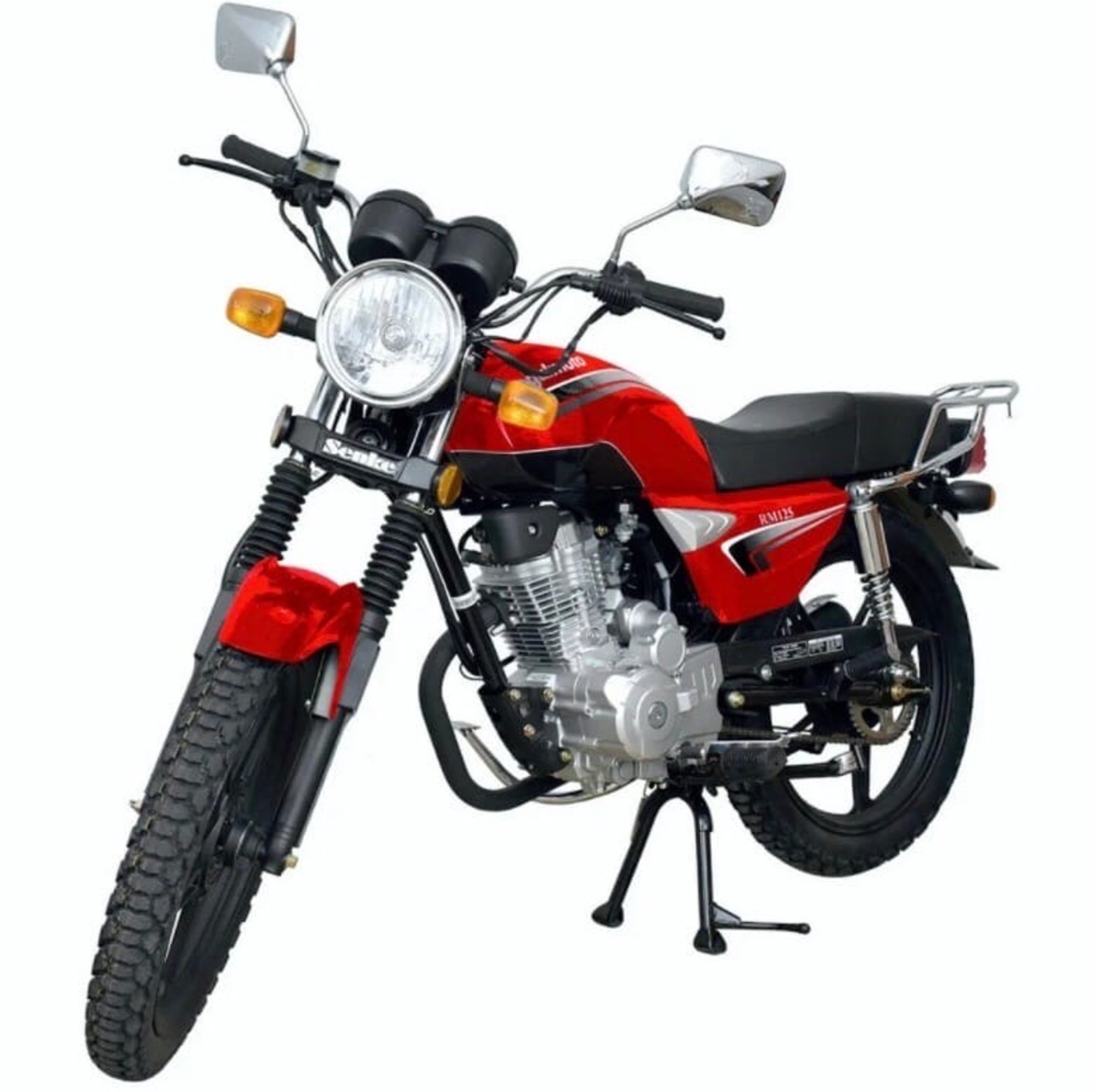 Regulmoto RM 125 – классический дорожный мотоцикл с надежным и экономичным двигателем небольшой кубатуры, который станет отличным выбором для повседневных поездок и утилитарного использования, как для начинающих, так и для опытных мотоциклистов.Мотоцикл Regulmoto RM 125 – популярная модель в ряду мототехники известного китайского производителя Senke, благодаря доступности и простоте эксплуатации заслужившая признание поклонников мототехники во всем мире. В раме байка с 18-дюймовыми колесами на легкосплавных дисках установлен одноцилиндровый 4-тактный двигатель с воздушным охлаждением рабочим объемом в 124 см3, способный развивать мощность 10,8 лошадиных сил. Подвеска мотоцикла представлена телескопической вилкой спереди и двумя амортизаторами сзади. Комфорт повседневного использования также обеспечивают электростартер, аналогово-цифровая приборная панель с замком зажигания, удобное сиденье, складные подножки пассажира, крепкий багажник, широкие крылья с брызговиками, центральная и стояночная подножка.За безопасность эксплуатации отвечают дисковый тормоз на переднем колесе и барабанный тормоз сзади. Regulmoto RM 125 оснащен полным комплектом оборудования, необходимого для передвижения по дорогам общего пользования: передние и задние поворотники, стоп-сигнал, фара головного света, на руле также установлены зеркала заднего вида. С мотоциклом Regulmoto RM 125 вы получите возможность не только оперативно решать повседневные дела – вы можете стать обладателем незаменимого помощника для утилитарных задач с доступной ценой и недорогим сервисным обслуживанием.У нас Вы можете купить этот мотоцикл с бесплатной доставкой по РФ и гарантией до года. Также его можно приобрести в рассрочку или в кредит.