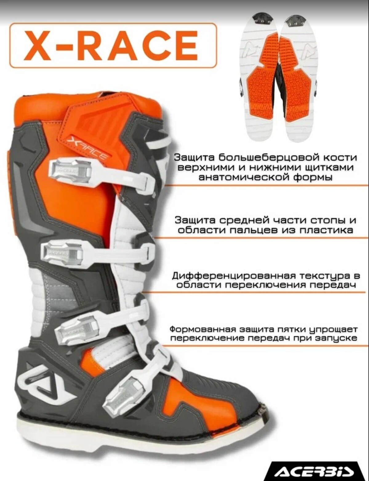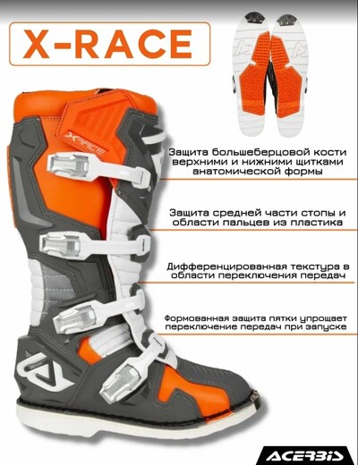 Главная ... Экипировка Эндуро Мотоботы кроссовые Acerbis X-RACE Orange/Grey, (р.42)