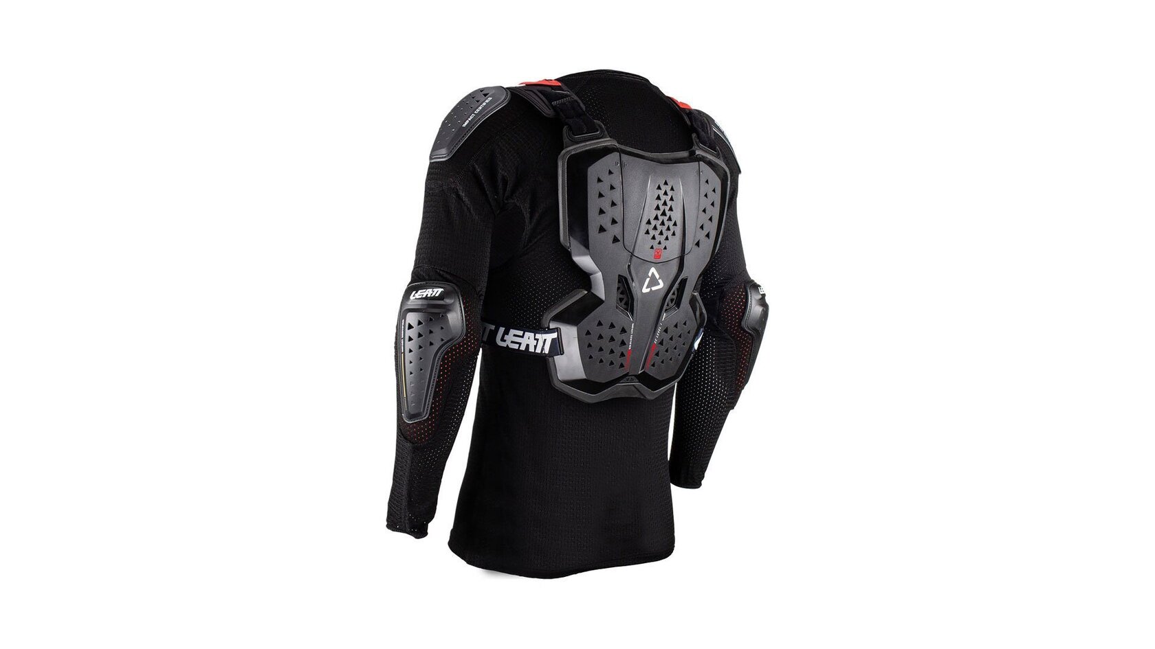 Подростковый панцирь Leatt Body Protector 3.5 Junior состоит из двух частей: сначала надевается компрессионная основа на молнии со встроенной мягкой защитой локтей и плеч, а затем сертифицированная CE защита груди и спины.