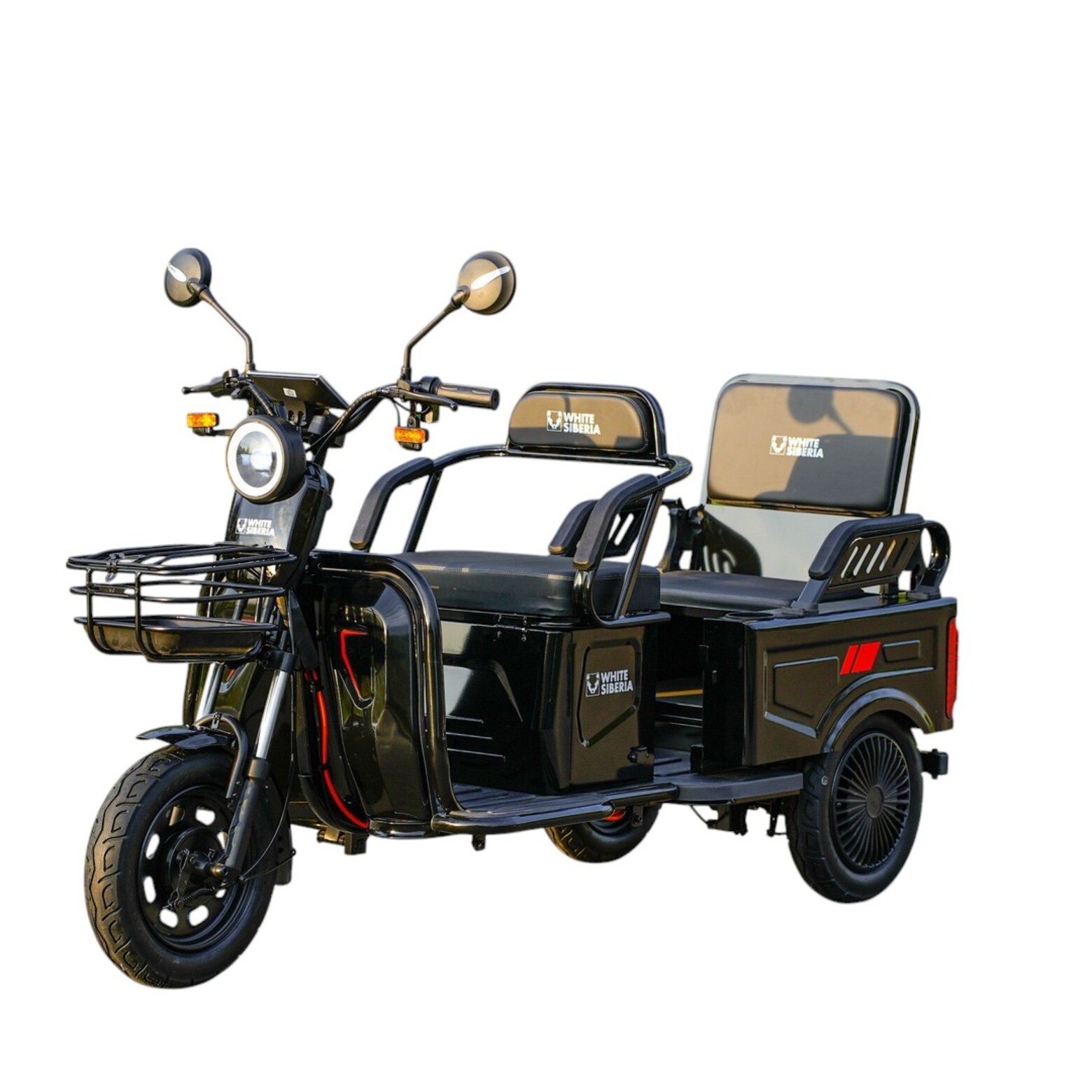 Пассажирский электрический трицикл-трансформер SIBTRIKE 2000WДанная модель рассчитана на взрослых райдеров, у которых есть дети. Поистине универсальный транспорт! Большое удобное сидение создано для продолжительных поездок. Есть откидное детское сидение и две корзинки - спереди и сзади. Аппарат подойдёт для поездок по территориям Российских санаториев, парков и набережных.Что же отличает SIBTRIKE 2000W от конкурентов?Универсальная конструкция для выполнения широкого спектра задач;Откидное детское сидение;Возможность ездить втроём – 2 взрослых места + детское сидение;Аккумулятор Li-ion 60V 21A с балансиром, запас хода до 45 км;Удобен для парков и коттеджных посёлков;Редукторный мотор с дифференциалом, что не даёт опрокидываться трициклу;Отличная тяга в гору;LED оптика;Колёса 10 дюймов.Электромотоцикл SIBTRIKE 2000W – отличный помощник для решения широкого спектра задач в санаториях, на территориях отелей, парков и набережных.Замена масла: 0,5 литра трансмиссионное GL-4 80W90Первая замена 350км, вторая 1000км, далее каждые 1500км