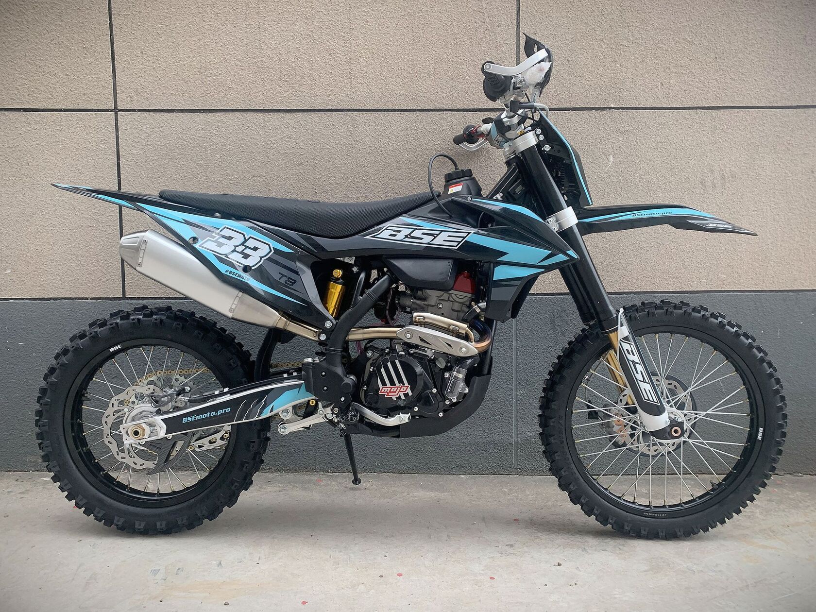 Новинка Т8 из абсолютно новой линейки 2023 года – T серии!Наша гордость – новый мотор TYAN TYX250-SR. Данный мотор является эксклюзивным для бренда BSE на российском рынке. Официально только у BSE Russia есть разрешение на установку мотора TYAN TYX250-SR на свою продукцию.TYAN Motor -профессиональный производитель двигателей и мотоциклов из индустриальной провинции на юго-востоке Китая. TYAN Motor специализируется на разработке, производстве, продаже и сервисе высококачественных моторов и мотоциклов вот уже 11 лет. Капитал компании составляет 1,5 млн $. Территория завода – 29 гектаров, есть современное оборудование и автоматизированные транспортные линии. Собственный первоклассный отдел разработок (R&D center) защитил более 200 патентов. Продукция завода крайне распространена не только в Китае, но и во всем мире. Ежегодно выпускается 1.5 миллионов двигателей и 300 000 мотоциклов. Все нацелено на качество продукции. Цель компании: выпускать самые лучшие двигатели на рынке. Слоган компании: "Еще больше мощности при лучшем качестве".Новый двигатель TYAN TYX250-SR – один из самых технологичных, современных и мощных из доступных на китайском рынке. Рабочий объём -250сс, 4-х тактный, 2 распредвала DOHC, 4-клапанная ГБЦ, водяное охлаждение, балансирный вал. Система питания – проверенный карбюратор Nibbi Racing 34 Black. Все это позволило снять внушительные 29 л.с. при 9000 об. в мин. и 24 Нм при 7500 об. в мин. Коробка передач – механическая 6 ступенчатая, запуск – только электростартером. Мотор сделан максимально легким, прочным и эффективным, с минимальными вибрациями для комфортного передвижения.Ещё одна особенность модели Т8 – абсолютно новая рама, которая полностью соответствует всем стандартам самого известного австрийского бренда мотоциклов для кросса и эндуро – KTM. Единая геометрия, эргономика, пропорции и углы вылета вилки. Высококачественная сталь, малый вес и большой запас прочности, идеальная развесовка. Мотоцикл оснащен легким алюминиевым подрамником, системой прогрессии и пластиковой защитой мотора. Установлен новый тип пластика - прочный, легкий и современный. Короткая колесная база в 1460 мм добавляет отменную маневренность.T8 оборудован фирменной заводской спортивной подвеской BSE Mojo Racing. Подвеска с большими ходами имеет полный диапазон регулировок и помогает отрабатывать даже самые жесткие приземления, с лёгкостью "глотая" все неровности. Подвеску легко настроить под любой рельеф, любую трассу и стиль езды. Вы ощутите результат, когда будете сокращать секунды круг за кругом! Особое внимание было направлено на снижение веса всей подвески.Разработка подвески BSE Mojo Racing производилась опытными инженерами-подвесочниками завода, а настройка - под чутким контролем заводской спортивной китайской командой BOSUER. Спереди установлена полностью регулируемая вилка «перевертыш» BSE Mojo Racing c перьями диаметром 53/58.5 мм, 930 мм. Сзади установлен полностью настраиваемый моноамортизатор BSE Mojo Racing 480 мм.На T8 установлен топливный бак на 8 л, мощная тормозная гидравлическая система с дисками диаметром 240 мм, звезды 13t – 49t, «зубастые» покрышки Carrystone 80/100-21 спереди и 110/90-18 сзади. Мотоцикл оснащается полностью светодиодной фарой головного света, грипсами и ручкой газа Nibbi Racing, цепкой шкуркой сиденья и защитой переднего тормозного диска.Легкий (сухая масса 114 кг), прекрасно сбалансированный, мощный мотор. Отточенн
