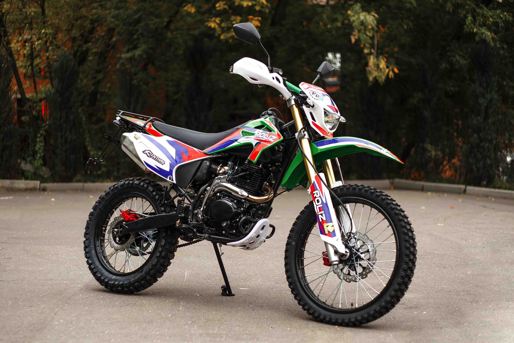 Эконика SPORT-003 – новый внедорожный мотоцикл. Его стоимость значительно ниже брендовых моделей со схожими характеристиками, но качество сборки в целом, как и отдельных деталей, отличное. В стальной раме с баком 6,5 литров установлен четырехтактный одноцилиндровый двигатель 172FMM с механической коробкой передач и воздушным охлаждением. Мотоциклы оснащаются карбюраторами PZ 30 . Для удобства запуска мотора предусмотрен электростартер.Мотоцикл оснащен фарой головного света, что является необходимым условием для езды в сумерках и темноте, и LED указатели поворота. Масса мотоцикла составляет порядка 140 кг. Габариты довольно большие – длина составляет 2240 мм., а высота по седлу – 930 мм., ширина руля- 855 мм. поэтому он отлично подойдет для тех, кто имеет рост от 175 см и выше.У нас Вы можете купить этот мотоцикл с бесплатной доставкой по РФ и гарантией до года. Также его можно приобрести в рассрочку или в кредит.