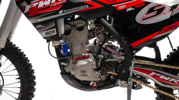 PWR FS300 NC - флагманская модель с кубатурой 300 куб.см. позволяет любому стать участником мотокросса и получить массу впечатлений.300 кубовый двигатель мощностью 34 л.с. с двумя радиаторами водяного охлаждения и вентилятором, для усиленного потока охлаждения, а так же с 4 клапанами ZS 182 MN и производительным карбюратором NIBBI N34 дают мотоциклу отличный разгон и скорость на прямых.Полностью настраиваемая подвеска FASTACE, которая обладает большим ходом и плавной работой для преодоления всех неровностей кроссовой трассы при сохранении ваших сил.Прочный облегченный маятник из алюминиевого сплава с большим сопротивление к нагрузкам на скручивание.Двойной алюминиевый руль переменного сечения 22/28 с низким подъёмом и с подушкой IGP.Это полноценный кроссовый мотоцикл, который является одним из лучших в кроссовой линейке мотоциклов от компании PWR, преимущества которого могут оценить как профессиональные гонщики, так и все ценители гонок по бездорожью. Уникальная комбинация легкого веса, впечатляющей мощи и исключительной управляемости. Модель обладает бойцовским характером, отличными эксплуатационными и динамическими характеристиками.