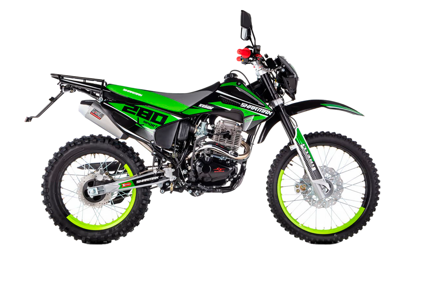 Обновлённый, Sharmax Sport 280 PR станет идеальным спутником для тех, кто начинает своё путешествие в мир эндуро.Улучшенная подвеска, новый двигатель с балансировочным валом усовершенствованная тормозная система! В основе — качество и надёжность.ДвигательИдеально сбалансированный двигатель 172 FMM3A, от концерна Zongshen, с балансировочным валом будто был создан для этого байка. 250 куб. см и 21 л.с. — более чем достаточно для быстрого старта. Этот силовой аппарат сделан, чтобы показать оптимальное сочетание полезной мощности и низкого веса.Трансмиссия5-ступенчатая коробка передач с шестернями из прочного кованного металла практически не изнашивается с течением времени. Лапка переключения — алюминиевая и складная, не пострадает даже в случае жёсткого приземления. Не рекомендуем проверять её на прочность, просто поверьте нам на слово.ПодвескаПодвеску можно настроить под грязь, камни и песок без потери качества. В конструкции задней подвески расположена прогрессия, позволяющая с комфортом передвигаться по мелкой щебёнке и преодолевать прыжки без ущерба для амортизатора. Байк легко настроить под свой вес, подобрав идеальный баланс жёсткости.ОхлаждениеSharmax Sport 280 PR оборудован системой воздушного охлаждения. Нет громоздкого радиатора, вес байка стал меньше, управляемость — лучше. Просто нажмите на газ — и вперёд! За температуру не переживайте — не перегреетесь.Идеальная геометрияСимметричная дуплексная рама, позаимствованная у профессиональных гоночных байков, обеспечит оптимальную жёсткость и отзывчивость. Отдельно проваренные швы дают дополнительную прочность конструкции мотоцикла. Благодаря такой форме райдер и байк становятся одним целым, с лёгкостью преодолевая любые препятствия трека.АккумуляторДвигатель питает мощный литий-ионный аккумулятор ёмкостью 7 А/ч. Не подведёт и не разрядится в самый важный момент, обеспечит быстрый старт мотора. Все провода для удобства спрятаны под сиденье, так что за цепляться ветки и вылетать на ходу точно не будут.ДизайнУстойчивость, манёвренность и надёжность сполна компенсируются дерзким и броским дизайном. Хотите стать самым заметным на треке? Sharmax Sport 280 PR вам в этом поможет.
