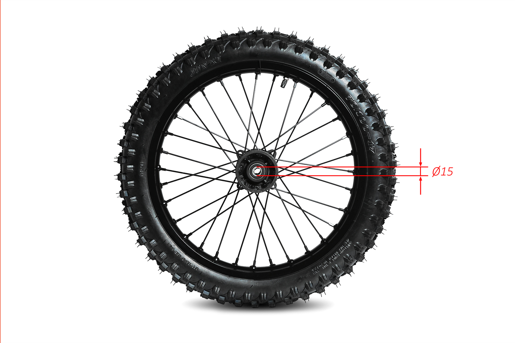 Готовое к установке переднее колесо R17 с алюминиевым ободом и прочной втулкой под ось диаметром 15 мм. Комплектуется покрышкой Yuanxing 70/100 R17, что обеспечивает необходимый баланс между прочностью, лёгким весом и сцеплением на различных покрытиях.