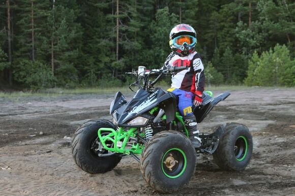 Квадроцикл подростковый бензиновый MOTAX ATV Raptor Super LUX 125 сс Черный (Зеленая рама)Комплектация 7: Коробка - 1+1 | Передние тормоза - барабанные, Задние - дисковые | Колеса - 7 дмКомплектация LUX: коробка 3+1 | Передние тормоза - барабанные, Задние - дисковые | Колеса - 8 дмКомплектация Super LUX: коробка 3+1 | Передние и задние тормоза - дисковые | Колеса - 8 дм