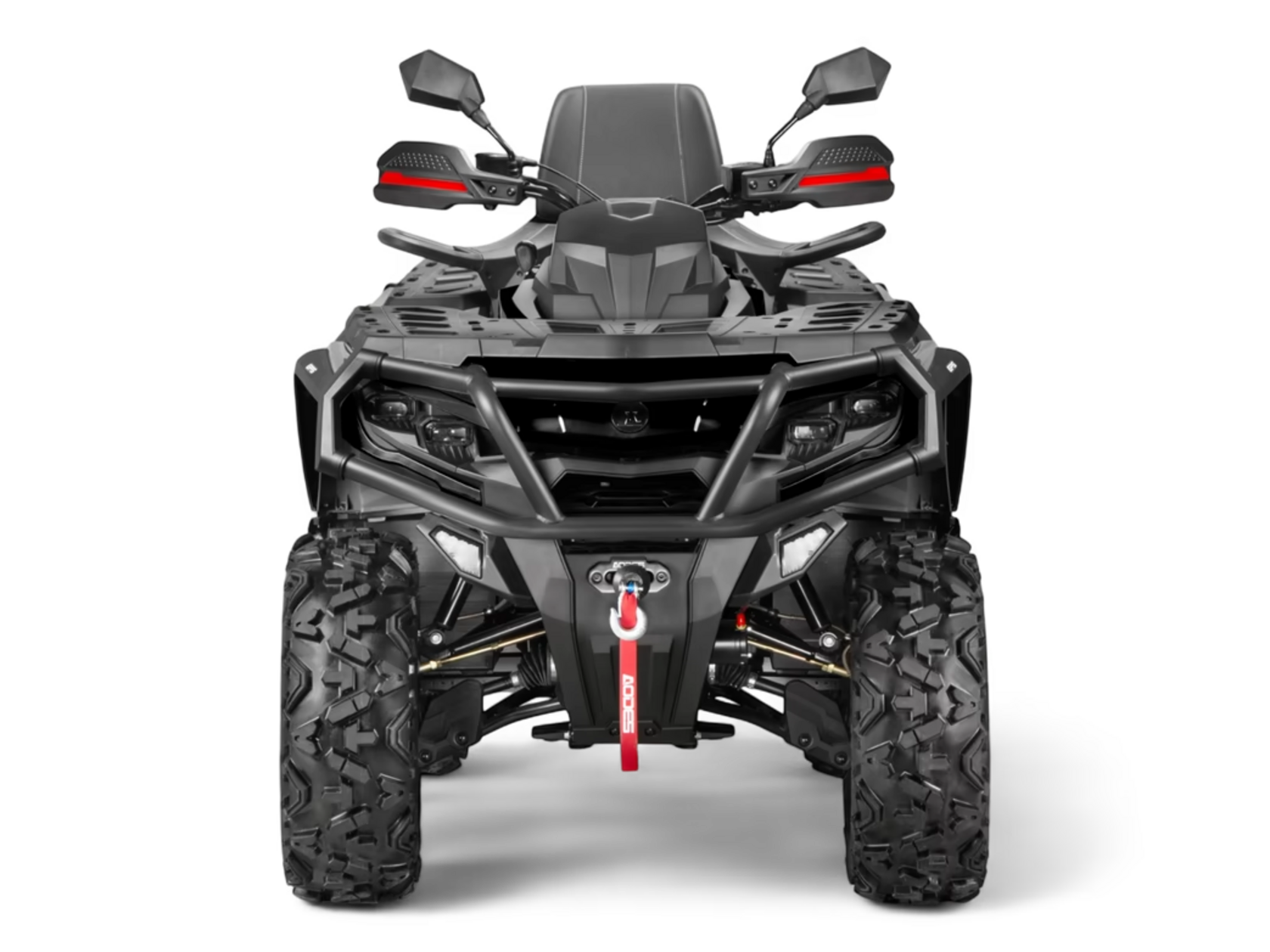 Комплектация Комбинация приборов: - Электронный ключ зажигания; - LCD приборная панель 6,86 дюйма с индикацией основных параметров: вкл/выкл полного привода, индикацией уровня топлива, сигналов поворота и аварийной остановки, подсветки, переключение режимов усилителя руля, информация о техническом обслуживании; - Лебедка с синтетическим тросом и тросоукладчиком, тяговое усилие 1500 кг.; - Ветрозащита рук на руле; - расширители колесных арок; - передний и задний бампер; - замок блокировки рулевого вала; - Электроусилитель руля; - cветодиодная оптика; - дополнительный свет; - фаркоп с электроподготовкой; - звуковой сигнал; - сигналы поворота; - зеркала заднего вида; - бардачок объемом 2 литра под сиденьем; - алюминиевые подножки водителя; - эргономичная задняя и передняя багажные площадки; - розетка 12 Вольт и USB.