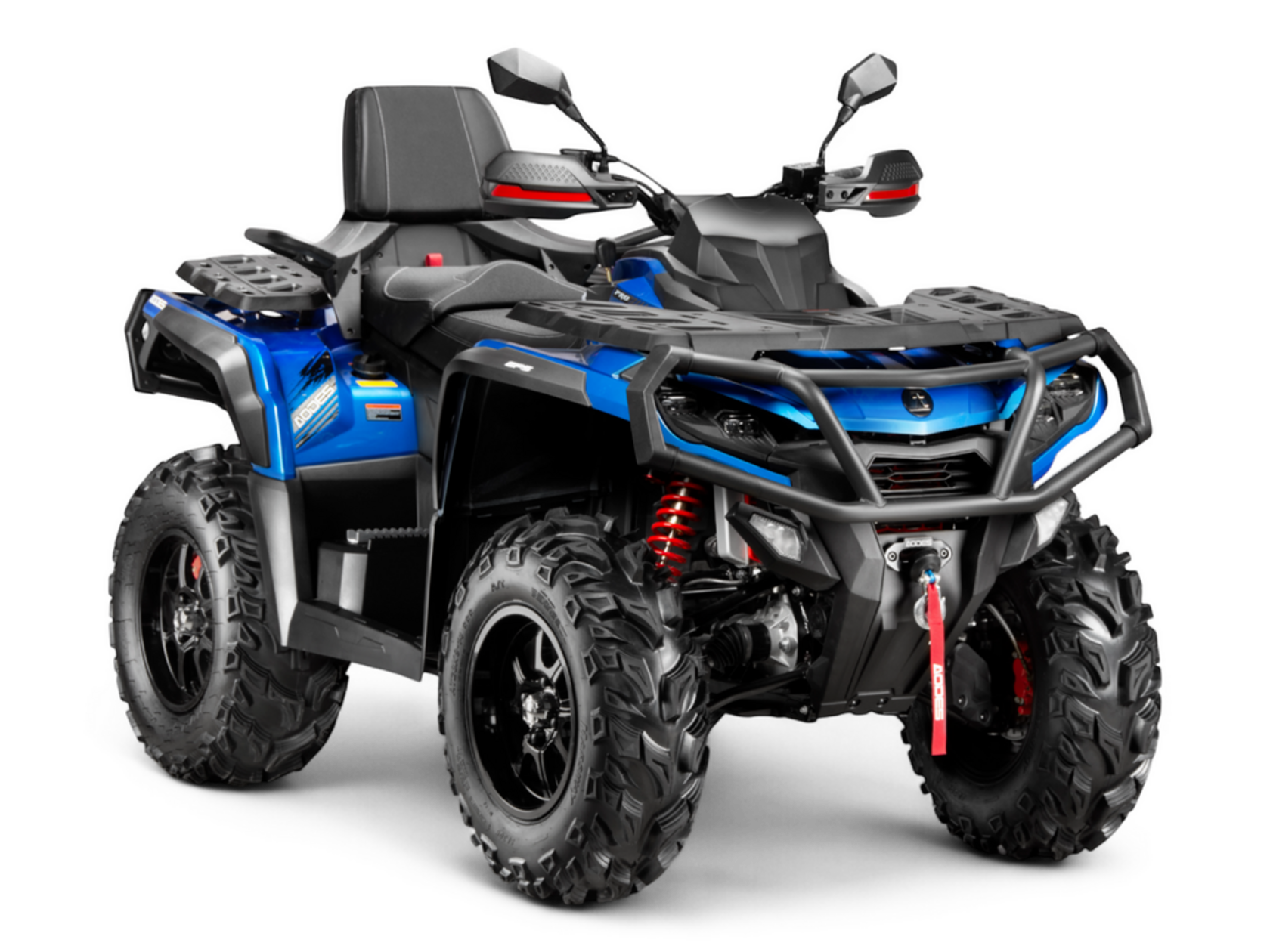 Комплектация Комбинация приборов Электронный ключ зажигания, LCD приборная панель 6,86 дюйма с индикацией основных параметров: вкл/выкл полного привода, индикацией уровня топлива, сигналов поворота и аварийной остановки, подсветки, переключение режимов усилителя руля, информация о техническом обслуживании. Лебедка Лебедка с синтетическим тросом и тросоукладчиком, тяговое усилие 1500 кг Элементы защиты Ветрозащита рук на руле, расширители колесных арок, усиленный передний и задний бампер, замок блокировки рулевого вала Дополнительное оборудование Электроусилитель руля, cветодиодная оптика, дополнительный свет, фаркоп с электроподготовкой, звуковой сигнал, сигналы поворота, зеркала заднего вида, бардачок объемом 2 литра под сиденьем, алюминиевые подножки водителя, эргономичная задняя и передняя багажные площадки, розетка 12 Вольт и USB.