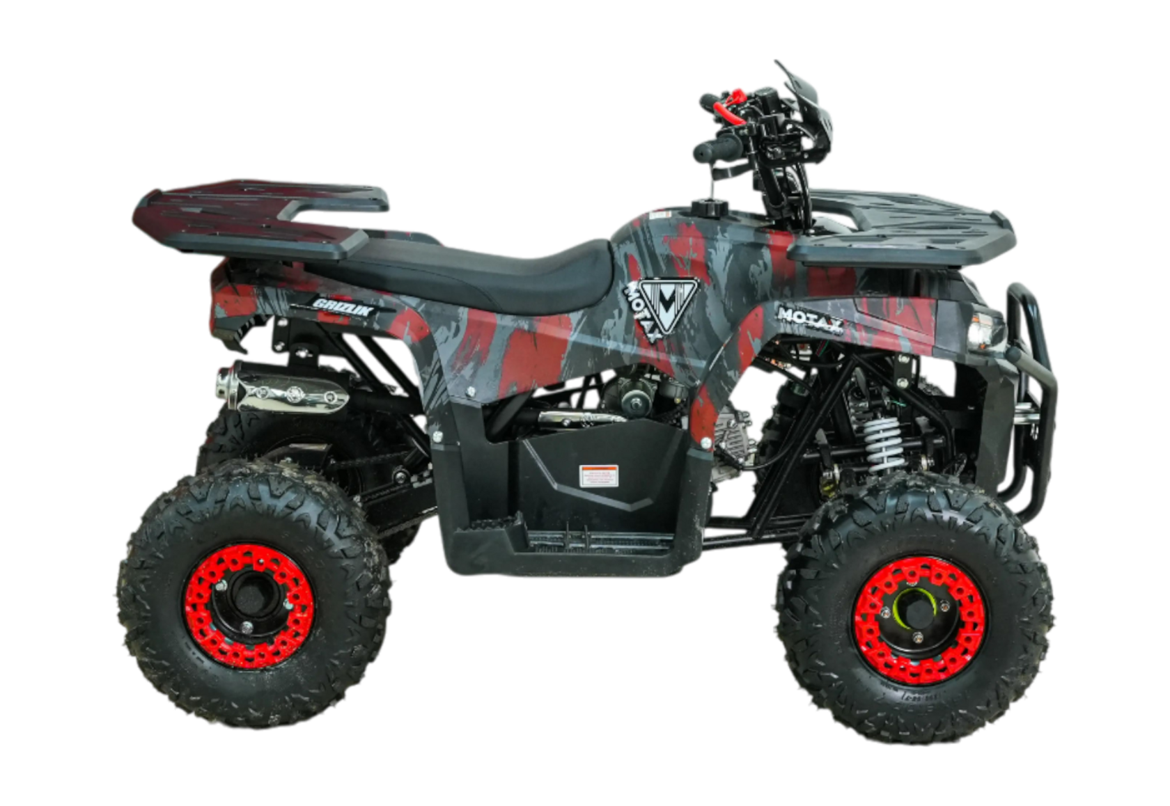 Квадроцикл бензиновый MOTAX GRIZLIK BASIC 125. Оборудован бензиновым четырехтактным двигателем, мощностью 7 л.с. Развивает скорость до 55 км/ч, грузоподъемность до 90 кг.