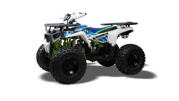 Квадроцикл Motoland 125 SHARK - новинка 2022 года. Техника оснащена двигателем на 125 кубических сантиметров и автоматической трансмиссией.Motoland 125 SHARK можно начинать осваивать уже с 6 лет под присмотром взрослых (в комплекте пульт родительского контроля, чека безопасности и ограничитель курка газа) и самостоятельно - с 12 лет.Комплектация:- Передняя линзованная фара (ближний, дальний)