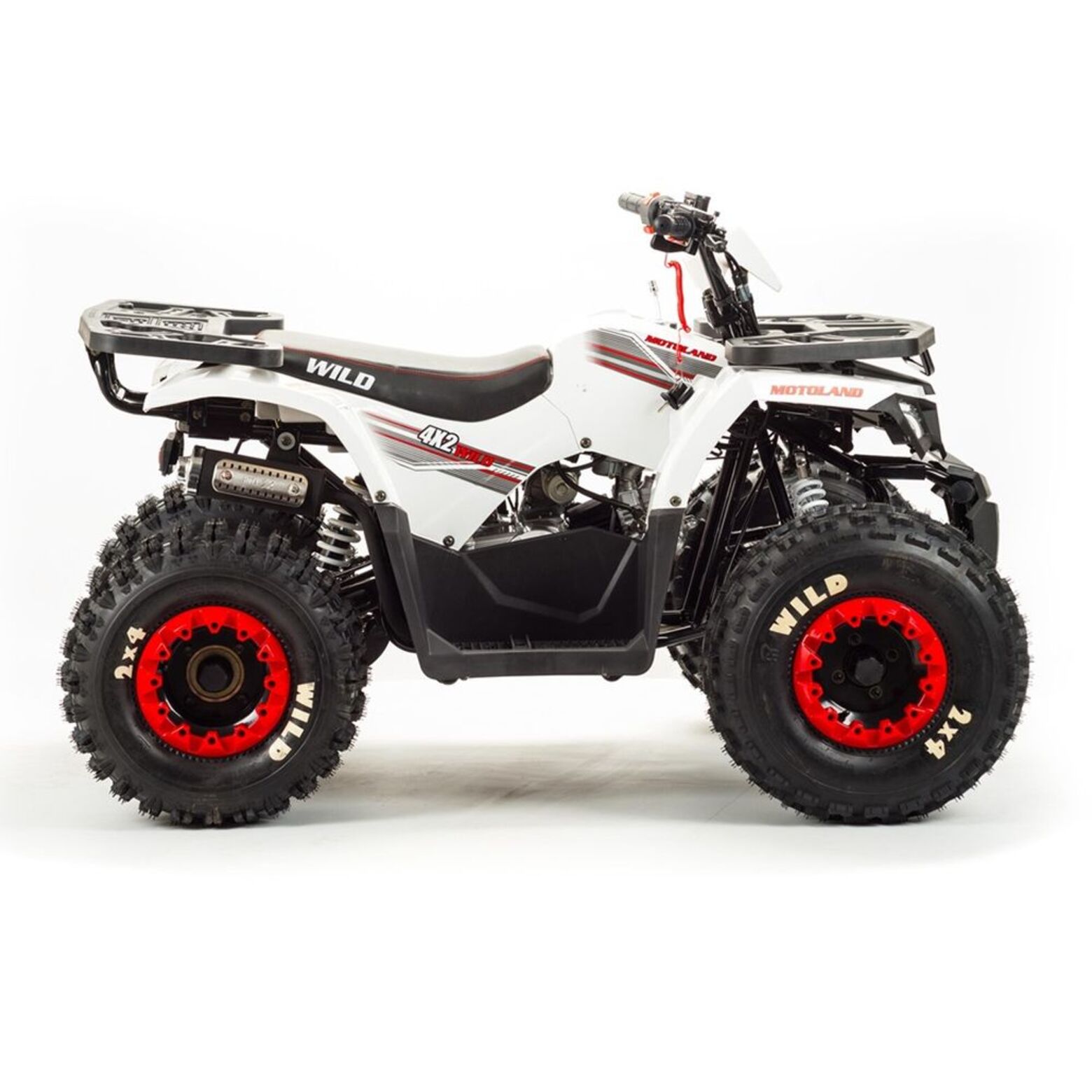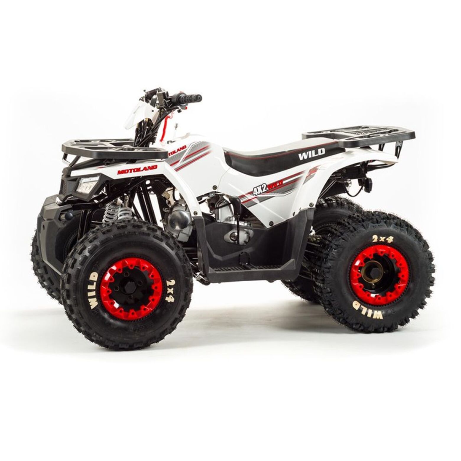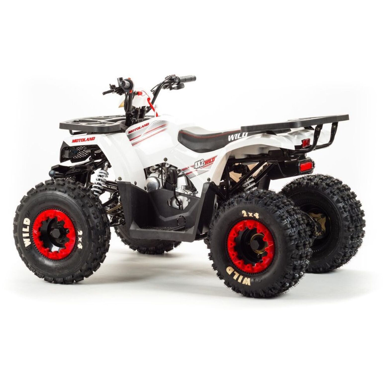 Квадроцикл Motoland ATV 125 Wild Basic A- улучшенный аналог, любимого всеми, квадроцикла ATV 125 Wild! Агрессивный и одновременно стильный дизайн нового квадроцикла без сомнения будет привлекать восхищенные и завистливые взгляды всех окружающих. Он способен развить скорость до 50 км/ч, что считается максимальной скоростью для данной модели. Предусмотрены багажники: передний и задний.Квадроцикл ATV 125 Wild Motoland имеет уникальные амортизаторы, которые отличаются своей надежностью и обеспечивают удобную езду на представленном квадроцикле. Этот квадроцикл ориентирован исключительно на одного человека.