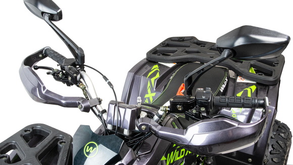 Motoland 125 WILD X PRO – входит в линейку современных и универсальных квадроциклов. Его утилитарный дизайн разработан с учетом вкусов современного поколения и понравится всем без исключения. Его 8 –дюймовые колеса на литых дисках с хорошей внедорожной резиной с легкостью преодолеют все преграды в виде грязи, песка, луж и кочек. У этого квадроцикла отличная управляемость в любых условиях эксплуатации, благодаря грамотной настройке подвески. Данная модель оснащена новинкой, отдельным подрамником на сайлентблоках под ДВС а так же на двигателе установлен балансирный вал , что обеспечивает максимально комфортную езду. Усиленная 428 цепь Максимальная скорость у Motoland 125 WILD X PRO 125 кубов – 60 км/ч. Объем топливного бака составляет 3,5 л. Также помимо основной светодиодной оптики, на данном квадроцикле спереди установлена дополнительная светодиодная фара, подворотники, зеркала заднего вида, защита рук, встроенная функция родительского контроля и автоматическая коробка передач D-N-R. с реверсом, которая установлен на усиленной раме, что дает уверенность в прочности конструкции. Любой быстро овладеет навыками езды на данной технике и получит массу запоминающихся эмоций.