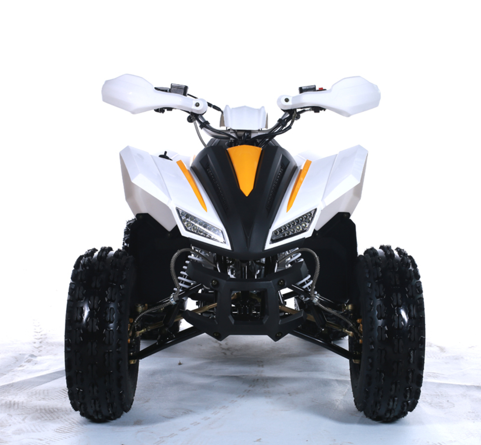 Подростковый бензиновый квадроцикл TAO MOTOR COYOTE 125, мощностью 7 л.с. с автоматической трансмиссией, светодиодной оптикой и электростартером Хотите порадовать ребенка ? Квадроцикл Motoland Coyote 125 - идеальное средство. Красивый дизайн с LED-оптикой, резвый двигатель, панель приборов, чека безопасности, мощный передний бампер и крутые внедорожные колеса. Очень простое и легкое управление. Скоростной режим может контролироваться родительским брелком. Подойдет для управления детям от 5 до 11 лет.