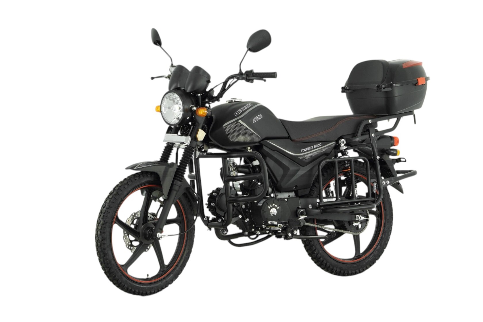 Мопед ROCKOT ALPHA TOURIST M-12 - всем известная классика в усовершенствованном исполнении. Надежный двигатель, в основу конструкции которого взяли мотор Honda CUB,имеет объем 125 куб.см. Воздушного охлаждения, установлен электростартер. Мопед оснащен эргономичным пассажирским местом и вместительным багажником.Сиденье отличается повышенной комфортностью, и уместиться на нем могут даже двое взрослых.Одним из главных плюсов модели является комфортность и плавность передвижения. Это позволяет совершать поездки на длительные расстояния. Посадка сиденья достаточно удобная и высокая, подставки для ног находятся там, где им следует быть, а руль имеет корректный плавный изгиб.Приборная панель отличается информативностью. Большие размеры тахометра и спидометра позволяют быстро считывать показатели в любых погодных условиях.Прекрасно подойдет для перемещения как в городском потоке, так и для путешествий за городом. Не требует регистрации..