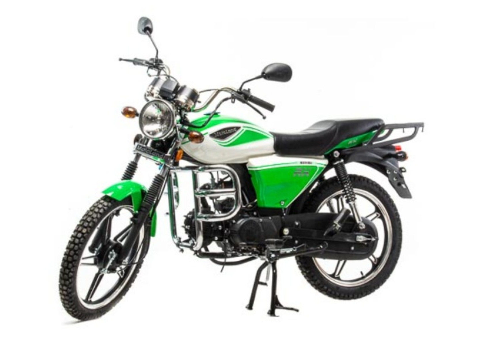Комплектация Барабанные тормоза установлены на переднем и заднем колесе. Багажник, зеркала заднего вида, центральная и боковая подножки. Дуги безопасности.
