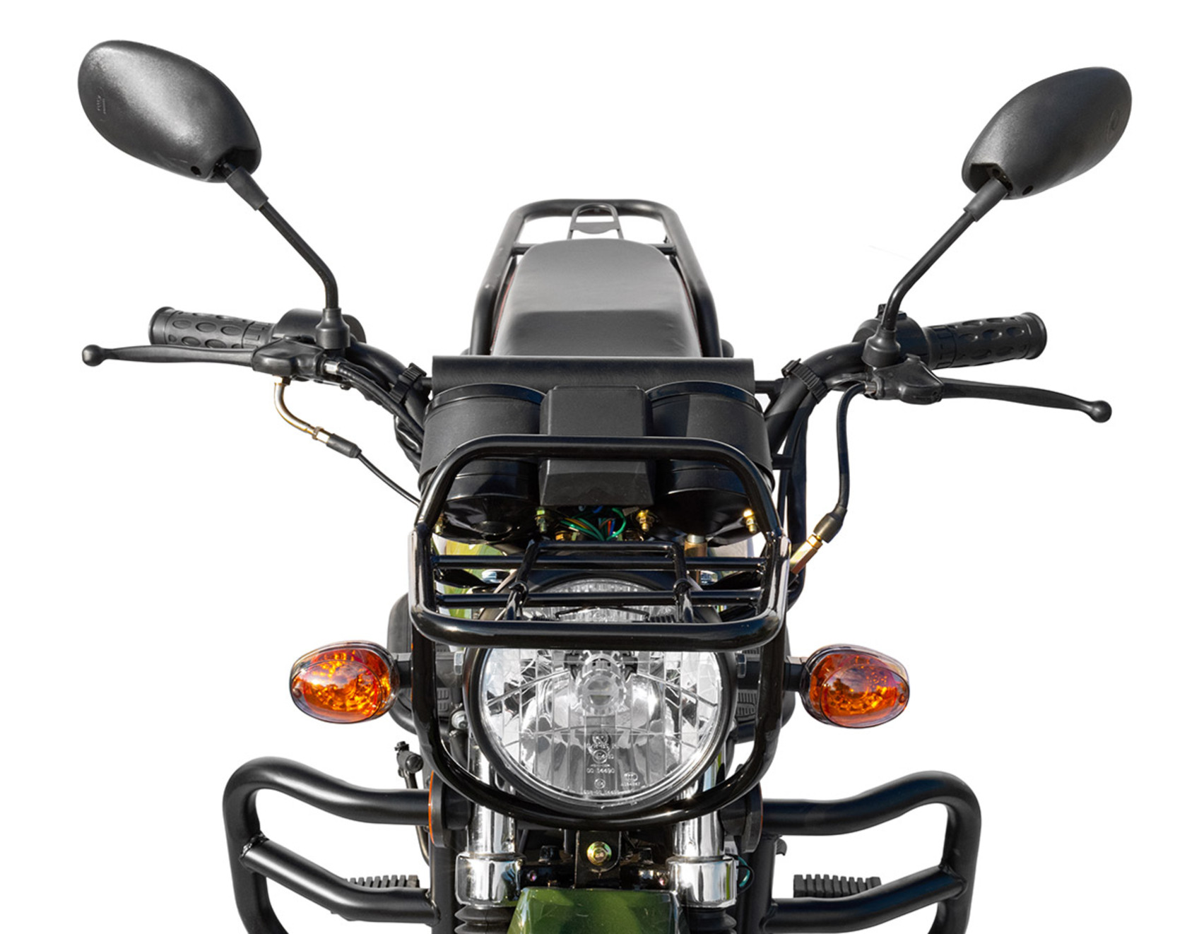 Электрика Светодиодная фара, электростартер, замок зажигания, АКБ(12В, 4Ач), полный комплект светотехники, аналоговая приборная панель.