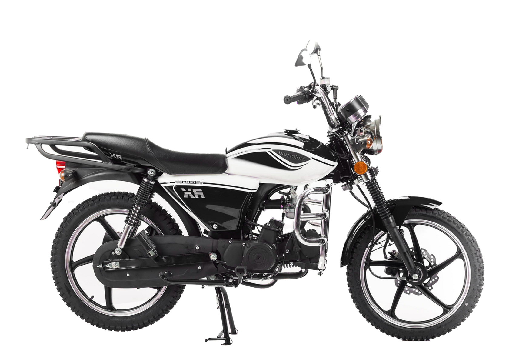 Комплектация Барабанные тормоза установлены на переднем и заднем колесе. Багажник, зеркала заднего вида, центральная и боковая подножки. Дуги безопасности.