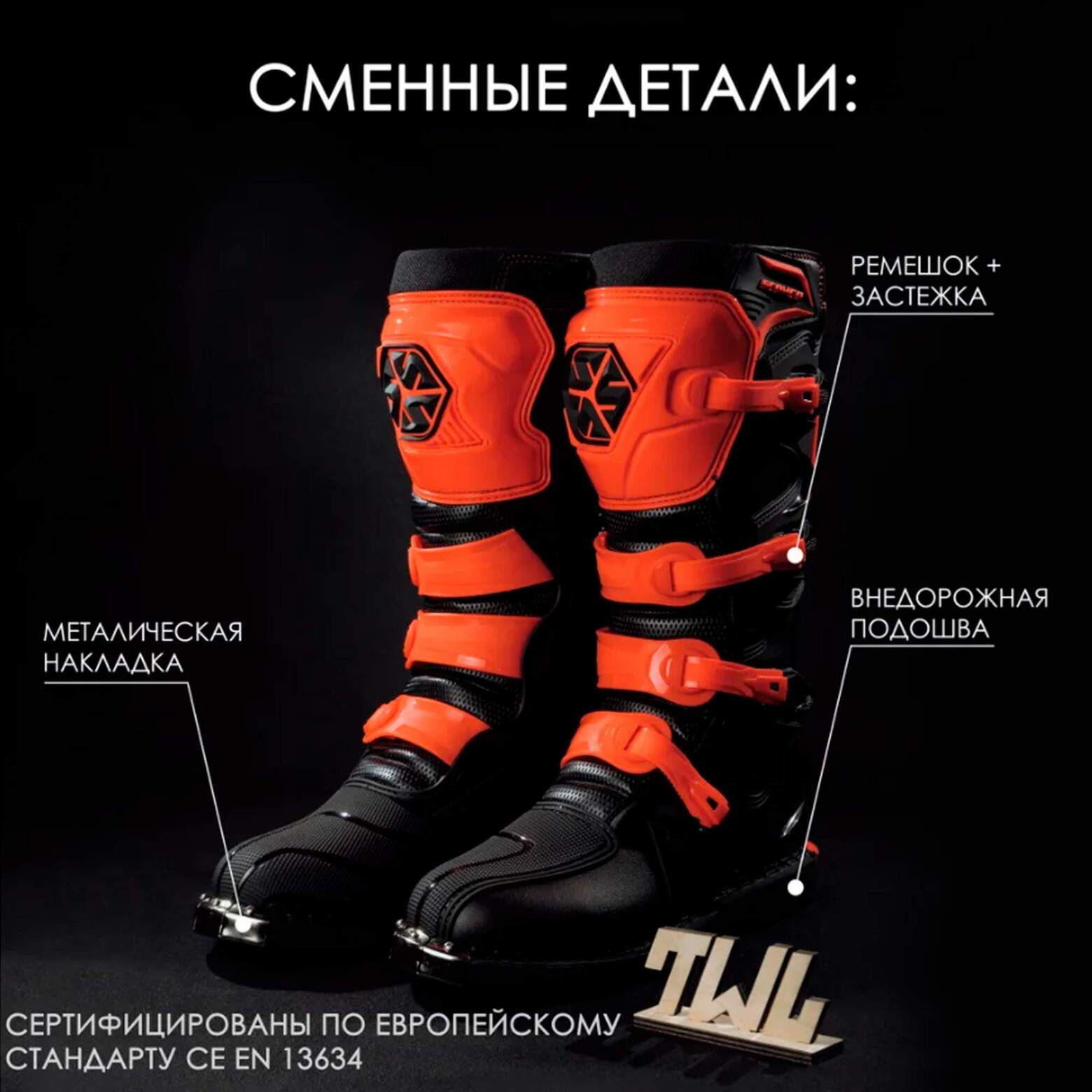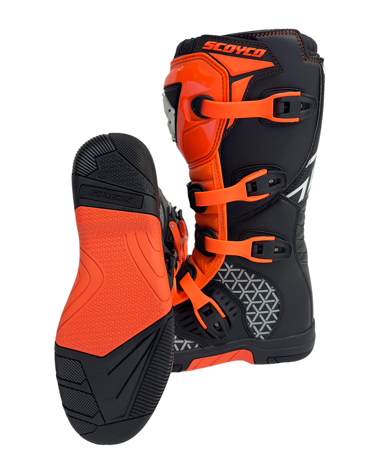 Scoyco MBM006: Полный контроль на бездорожьеМотоботы Scoyco MBM006 — созданы для тех, кто бросает вызов самым экстремальным трассам. Это ваш надежный союзник в мире мотокросса, эндуро и триала, обеспечивающий максимальную защиту, выносливость и комфорт.Ключевые преимущества:• Превосходная защита: Усиленный пластиковый панцирь защищает голень, лодыжку и пятку. Регулируемый замок на щиколотке обеспечивает идеальную посадку.• Прочность и износостойкость: Комбинация кожзама и нейлона выдерживает экстремальные нагрузки. Усиленные зоны в критических точках продлевают срок службы.• Агрессивное сцепление: Шипастая резиновая подошва обеспечивает полный контроль над мотоциклом в любых условиях.• Комфорт и вентиляция: Дышащая подкладка и вентиляционные каналы эффективно отводят влагу и тепло.• Надежная фиксация: Две металлические пряжки и широкая липучка для быстрого и точного подгона.Технические характеристики:Бренд: ScoycoМодель: MBM006Назначение: Мотокросс, Эндуро, ТриалМатериал верха: Искусственная кожа, нейлон, текстильные вставкиЗащита: Носок, пятка, щиколотка (регулируемый замок), голеньПодкладка: Дышащая сетка, съёмная антибактериальная стелькаПодошва: Резиновая, масло- и бензостойкая, гибкаяЗастежка: 2 металлические пряжки + липучкаРазмеры: 39-48 (уточняйте наличие)Для кого:Профессиональные кроссмены и любители эндуро, которые ценят безопасность, контроль и результат на трассе.