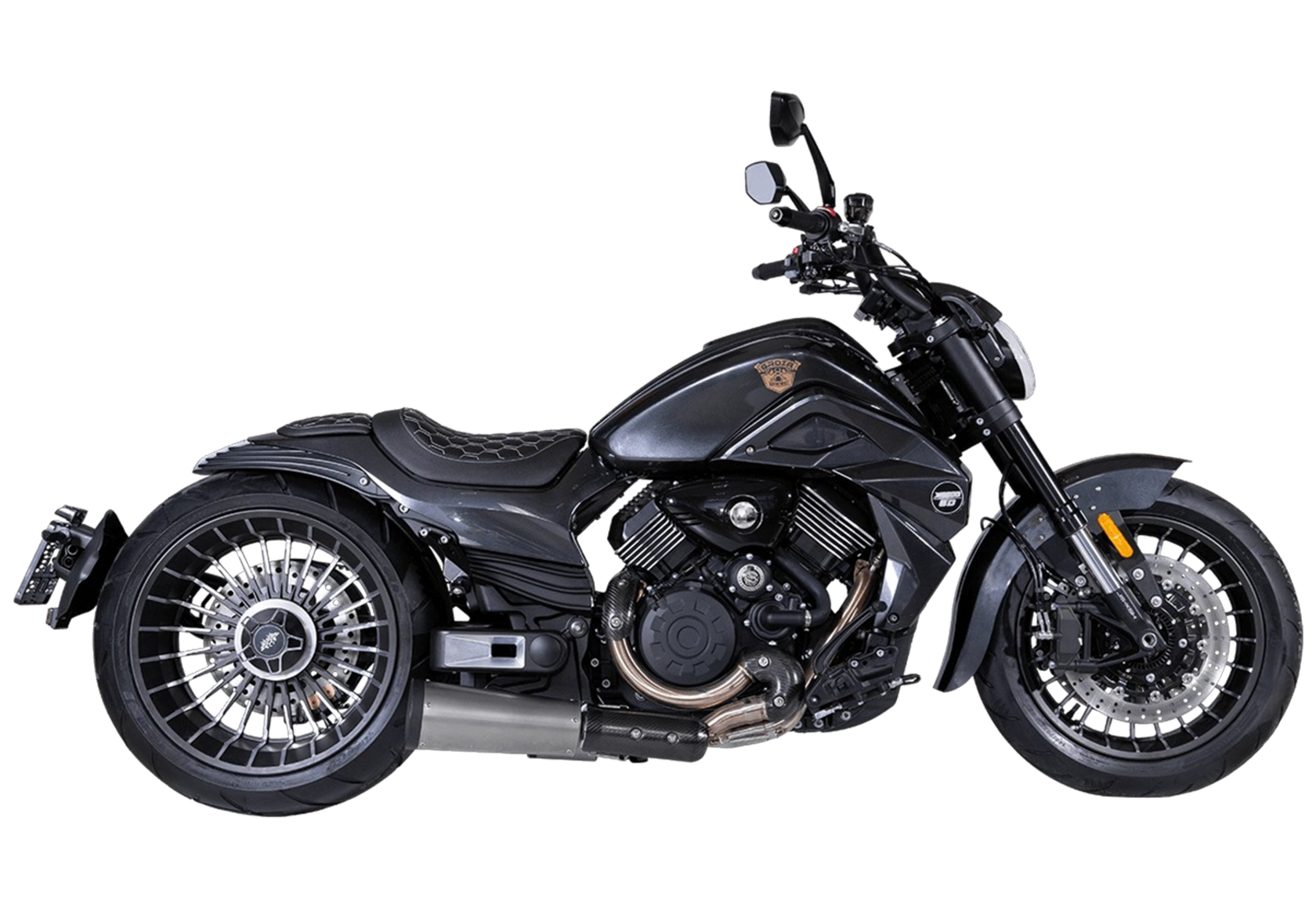 GROZA Timberwolf 800 – это не просто средство передвижения, а воплощение силы и выносливости, скрытых под привлекательным внешним видом.Сердце мотоцикла – производительный и надёжный V-образный 2-х цилиндровый 4-тактный двигатель с 4 клапанами жидкостного охлаждения. Максимальная скорость, которую может развить модель, – 160 км/ч.Механическая коробка передач имеет 6 ступеней. Ремень вариатора, произведённый компанией USA Gates, гарантирует долговечность. Топливная система представлена инжектором DELPHI. Запуск двигателя осуществляется с помощью электростартера.Передняя подвеска – перевернутая телескопическая регулируемая вилка с ходом 135 мм, задняя подвеска – пневматическая, регулировка которой осуществляется кнопками на руле или с брелока. Спереди о безопасном замедлении заботятся 2 4- поршневых суппорта с тормозными дисками 320 мм, сзади однопоршневой суппорт с плавающей скобой и тормозным диском 260 мм. Кованые алюминиевые колёса имеют размер 17х18 дюймов. На обоих колёсах есть ABS-система.Отличительная черта модели – увеличенная задняя покрышка 310 мм, которая делает вождение более устойчивым. Размеры модели 2420x890x1130 мм. Колёсная база 1650 мм. Клиренс 130 мм. Масса 288 кг. Топливный бак вмещает 22 л.Приборная панель представлена TFT-дисплеем с возможностью подключения смартфона. LED-оптика обеспечивает яркое освещение. Есть функция настройки сиденья по высоте – от 650 мм до 700 мм.GROZA Timberwolf 800 – сочетание потрясающей динамики, плавной подвески и брутального облика.Комплектация и внешний вид мотоцикла могут отличаться в зависимости от поставки. Изображение на сайте не гарантирует наличия тех или иных опций. Уточняйте информацию при оформлении заказа.