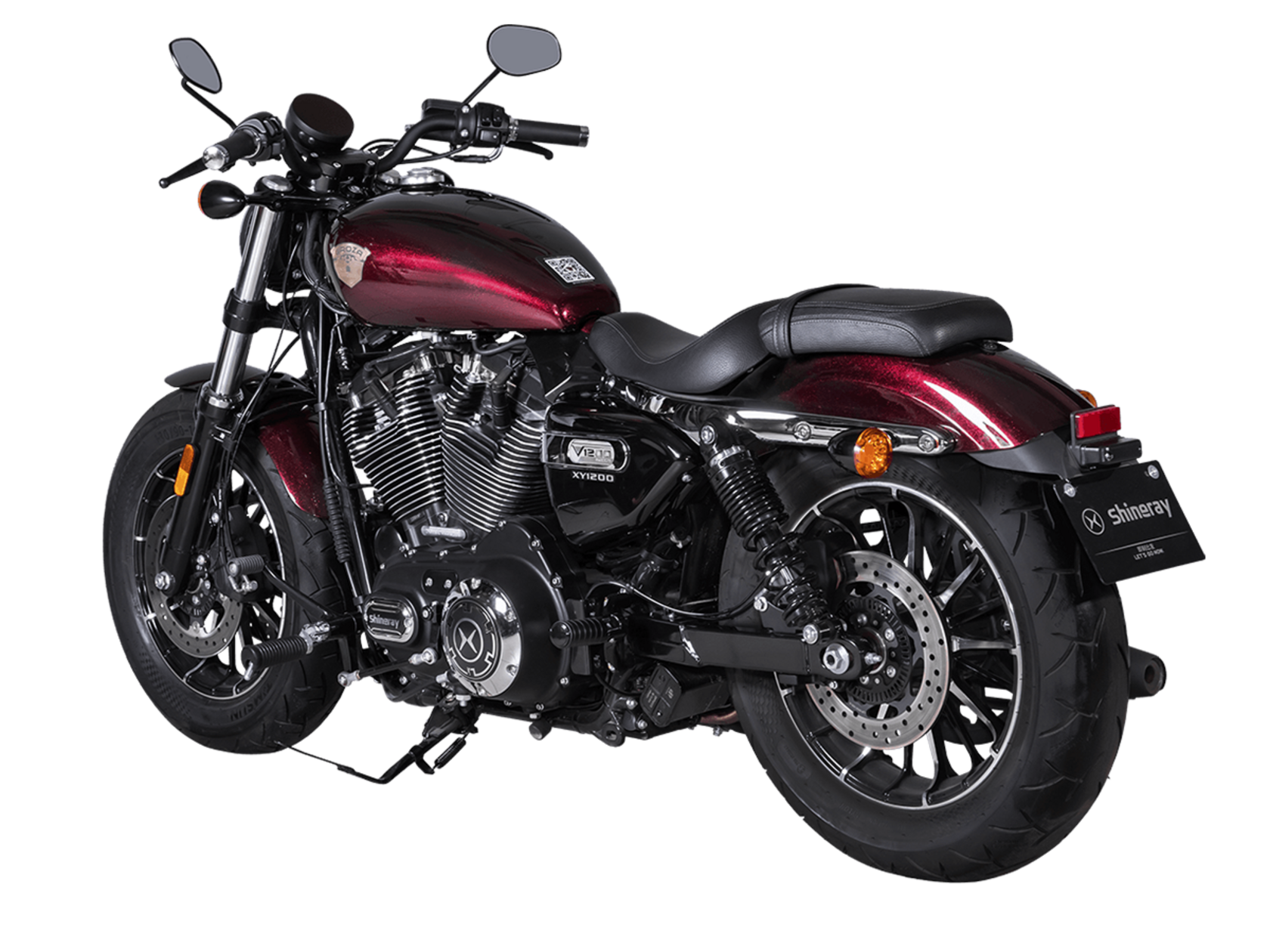 Мотоцикл GROZA V1200 2025 – брутальный круизёр в классическом стиле, готовый к покорению городских пространств и скоростных трасс.Оснащён 2-цилиндровым V-образным 4-тактным двигателем объёмом 1200 см³ с 2 распредвалами, 4 клапанами на каждом цилиндре и воздушным типом охлаждения. Максимальная мощность в 61 л.с. достигается при 5500 об/мин, а максимальный крутящий момент 91 Н·м при 4000 об/мин. Трансмиссия представлена 5-ступенчатой механической коробкой передач.Максимальная скорость 170 км/ч.Объём топливного бака 14 литров.На мотоцикл установлены литые алюминиевые колёса диаметром 16 дюймов. В качестве подвески спереди используется телескопическая вилка с диаметром пера 49 мм, а сзади установлены 2 пружинно-гидравлических амортизатора с регулировкой преднатяга. За торможение отвечает дисковая гидравлическая система. Передние тормоза имеют двойной диск диаметром 280 мм с 2-поршневым суппортом, а задние имеют диск 260 мм с однопоршневым суппортом с плавающей скобой и системой ABS.Габариты 2180х830х1100 мм, вес 252 кг. Колёсная база 1500 мм, клиренс 110 мм, высота по сиденью 710 мм.Комплектация и внешний вид мотоцикла могут отличаться в зависимости от поставки. Изображение на сайте не гарантирует наличие тех или иных опций. Уточняйте информацию при оформлении заказа.