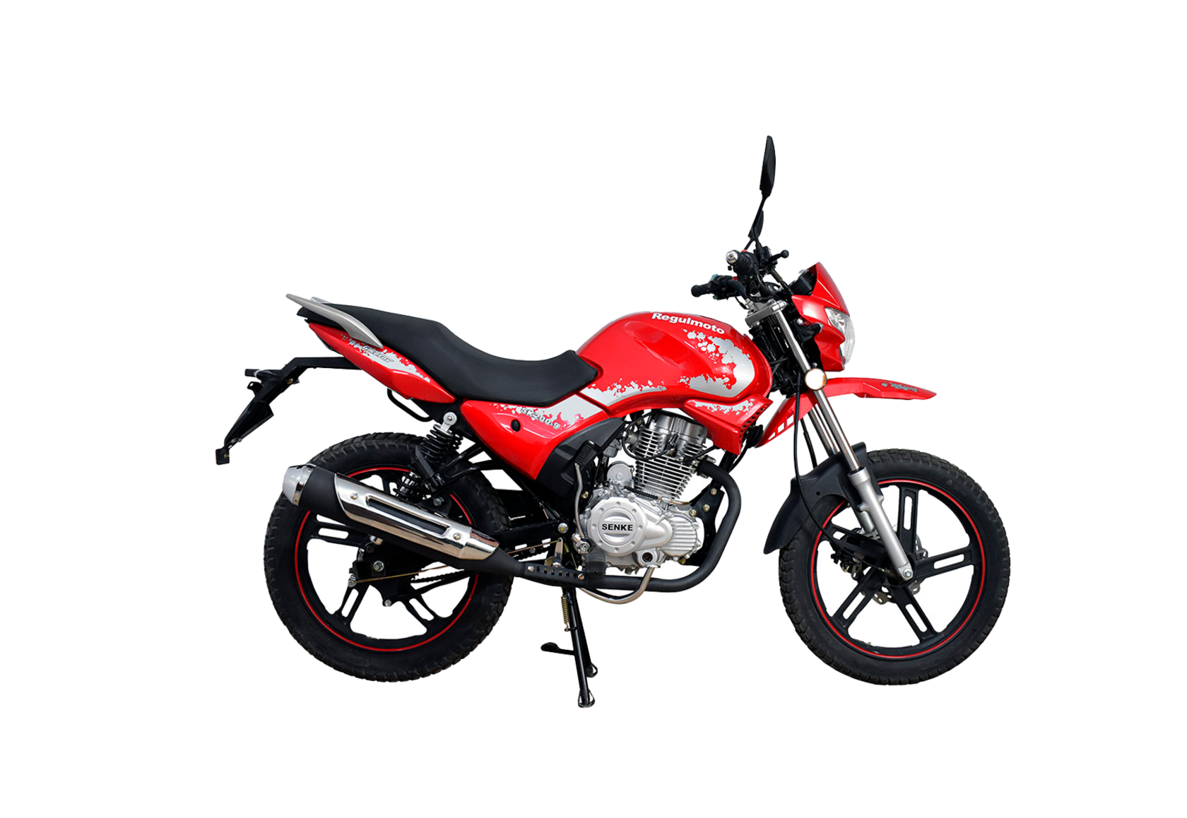 Компания «Regulmoto» представляет вниманию поклонников двухколесной мототехники мотоцикл Regulmoto SK200-9 – надежный и доступный для многих байк с широкими эксплуатационными возможностями. Мотоцикл Regulmoto SK200-9 – один из ярких представителей линейки малокубатурной мототехники известного азиатского производителя Senke. Мотоциклы производства одного из крупнейших китайских концернов пользуются заслуженным признанием экспертов и мотолюбителей в различных частях света, включая Европу и Америку. Продукцию Senke отличают не только одно из лучших на рынке соотношений достойного качества и демократичной цены, но и солидный эксплуатационный ресурс, высокая надежность, простое и недорогое сервисное обслуживание. В раме мотоцикла с 18-дюймовыми колесами на литых дисках установлен 4-тактный 200-«кубовый» двигатель с воздушным охлаждением, который способен развивать максимальную мощность в 13,6 лошадиных сил. Наличие у двигателя балансирного вала способствует снижению вибрации при работе мотора. 5-ступенчатая трансмиссия, электростартер, полноценная подвеска, представленная телескопической вилкой спереди и двумя амортизаторами и маятником сзади, цифровая приборная панель и емкий топливный бак – все это позволит получать максимум удовольствия от поездки. За безопасность использования мотоцикла Regulmoto SK200-9 отвечают надежная тормозная система (дисковый тормоз спереди и барабанный сзади), комплект светового оборудования и зеркал заднего вида. Regulmoto SK200-9 отличают современный внешний вид и обширные возможности практического использования: комплектация байка dual-sport резиной и увеличенный дорожный просвет позволяет эксплуатировать его как на асфальтированных дорогах, так и на проселках и тропах, включая легкое бездорожье.