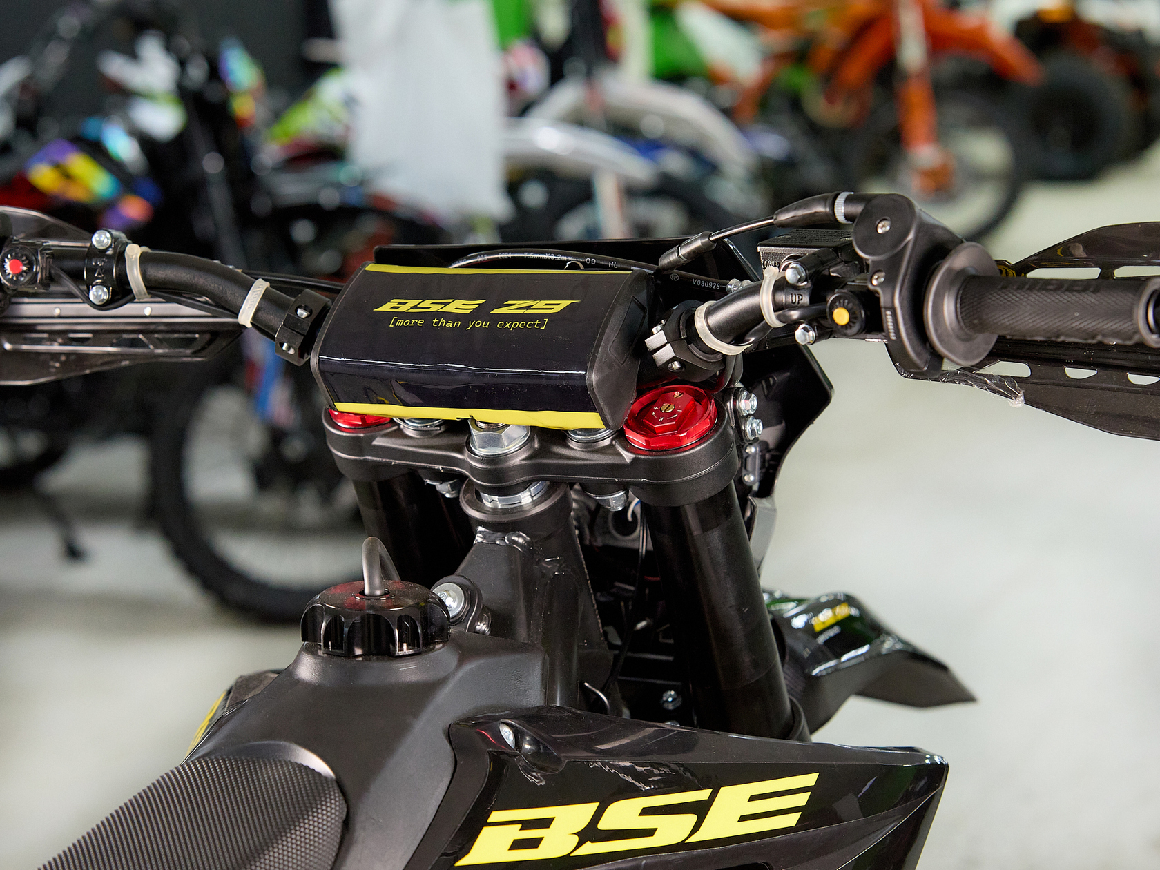 BSE Z9 – полноразмерный спортивный эндуро мотоцикл на стальной раме. Оснащен новым мотором ZS175 300 кубов с воздушным охлаждением. Лёгкий и маневренный. Выполнен полностью в черном цвете.