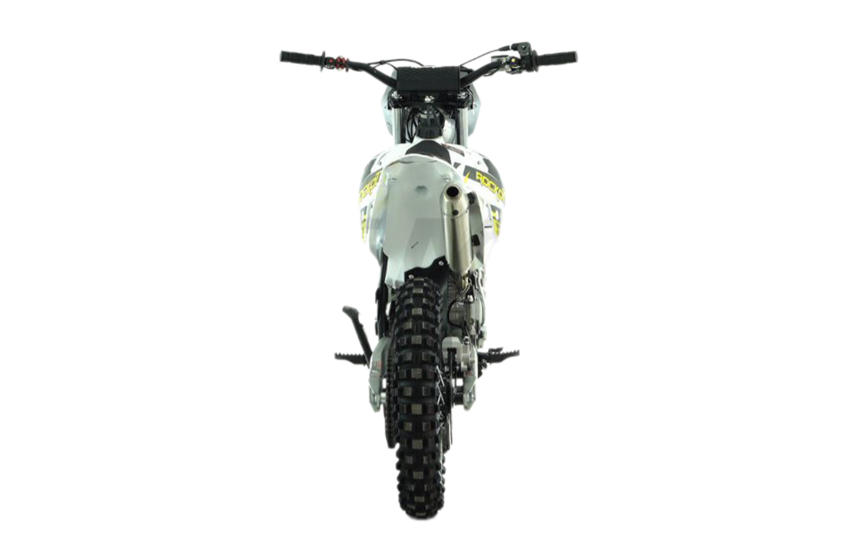 1ROCKOT R5S - эндуро мотоцикл начального уровня, который создан для новичков и подростков. Небольшая высота по седлу и короткая колесная база обеспечивают отличную управляемость и позволяют управлять мотоциклом людям, чей рост достигает 150 см. ROCKOT R5S построен на базе уже известных многим мотоциклов ROCKOT R5 Cyclone и R5F Raptor. ДизайнМотоциклы ROCKOT серии R имеют общую раму, пластик и концепцию дизайна. Различна между ними цветовая схема графики облицовочного пластика.Рама мотоцикла R5S окрашена в черный цвет. На белом облицовочном пластике нанесена прочная защитная пленка с графикой в белом черном и желтом цветах. Сам пластик выполнен в стиле КТМ 2015. Передние амортизаторы и обода колесных дисков, как и рама, окрашены в черный матовый цвет. ДвигательЭндуро мотоцикл ROCKOT R5S оснащен четырехтактным двигателем, объемом 144,6 см³ и мощностью 11,6 лошадиных сил. Система ГРМ 2-х клапанная с верхним распредвалом. Запуск двигателя может осуществляться как электростартером, так и кик-стартером. Коробка передач - пятиступенчатая с многодисковым сцеплением в масляной ванне. Двигатель очень отзывчиво откликается на ручку газа, но в то же время прощает ошибки, поэтому данная модель и будет идеальной для новичка. РамаROCKOT R5S построен на раме типа К5, ставшей очень известной благодаря мотоциклам ROCKOT R5 Cyclone и R5F Raptor. При том, что это мотоцикл с высотой по седлу равной питбайку, он имеет настоящую полноценную мотоциклетную раму из хром-молибденовой стали. Геометрия рамы идеально сбалансирована для эндуро и обеспечивает отличную управляемость на бездорожье. Подрамник также выполнен из стали. ПодвескаДанная модель построена на классической эндуро подвеске. Спереди установлена телескопическая вилка с толщиной перьев 37 мм, что является внушительным диаметром для классической вилки. Сзади установлен стальной маятник с моноамортизатором. Конструкция задней подвески - безлинковая, что упрощает обслуживание мотоцикла. Тормозная системаПолностью вся тормозная система мотоцикла - дисковая гидравлическая. Спереди и сзади установлены тормозные диски равного диаметра - 240 мм. Сзади установлен однопоршневой тормозной суппорт, спереди - двухпоршневой. КолесаВажная отличительная часть мотоцикла - колеса размерностью 19/16. Данное решение позволило сделать среднеразмерный эндуро мотоцикл идентичным по геометрии и управляемости полноразмерному эндуро, а также уменьшить высоту по седлу. Спереди установлена шина размерностью 80/100-19, сзади - 110/90-16 с внедорожным грязевым протектором.. Также, в отличие от других мотоциклов подобной компоновки, он приводится в движение цепью с 520 шагом, тогда как у других мотоциклов установлена цепь с шагом 428. Стальная приводная ведомая звезда на 47 зубьев обеспечивает высокий крутящий момент и позволяет заезжать на высокие подъемы с крутым уклоном. Кому подойдет эндуро мотоцикл ROCKOT R5SROCKOT R5S можно назвать промежуточной моделью между питбайком и полноценным мотоциклом. Колесная база мотоцикла - 1340 мм, а высота по седлу - 850 мм. Если вы задумываетесь, что вам подойдет больше, питбайк или мотоцикл - ROCKOT R5S для вас. Данная модель поможет райдеру понять принцип управления мотоциклом, научиться пользоваться мотоциклетной пятиступенчатой коробкой передач и почувствовать отличную управляемость, которая присуща только мотоциклам. Данную модель высоко оценя