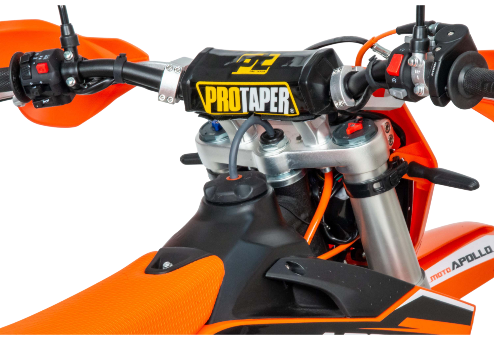 Moto Apollo F3 300 в новой, ещё более продвинутой версии — это мощный и технологичный кроссовый мотоцикл, созданный для уверенной езды по пересечённой местности. Несмотря на маркировку двигателя 176FMN, его реальный рабочий объём составляет 300 см³, а мощность достигает 27 лошадиных сил, что делает его одним из самых энерговооружённых в своём классе. Двигатель с воздушным охлаждением и цепным приводом ГРМ сочетает простоту конструкции с высокой надёжностью, а использование бензина АИ-95 обеспечивает стабильную работу и оптимальную отдачу.