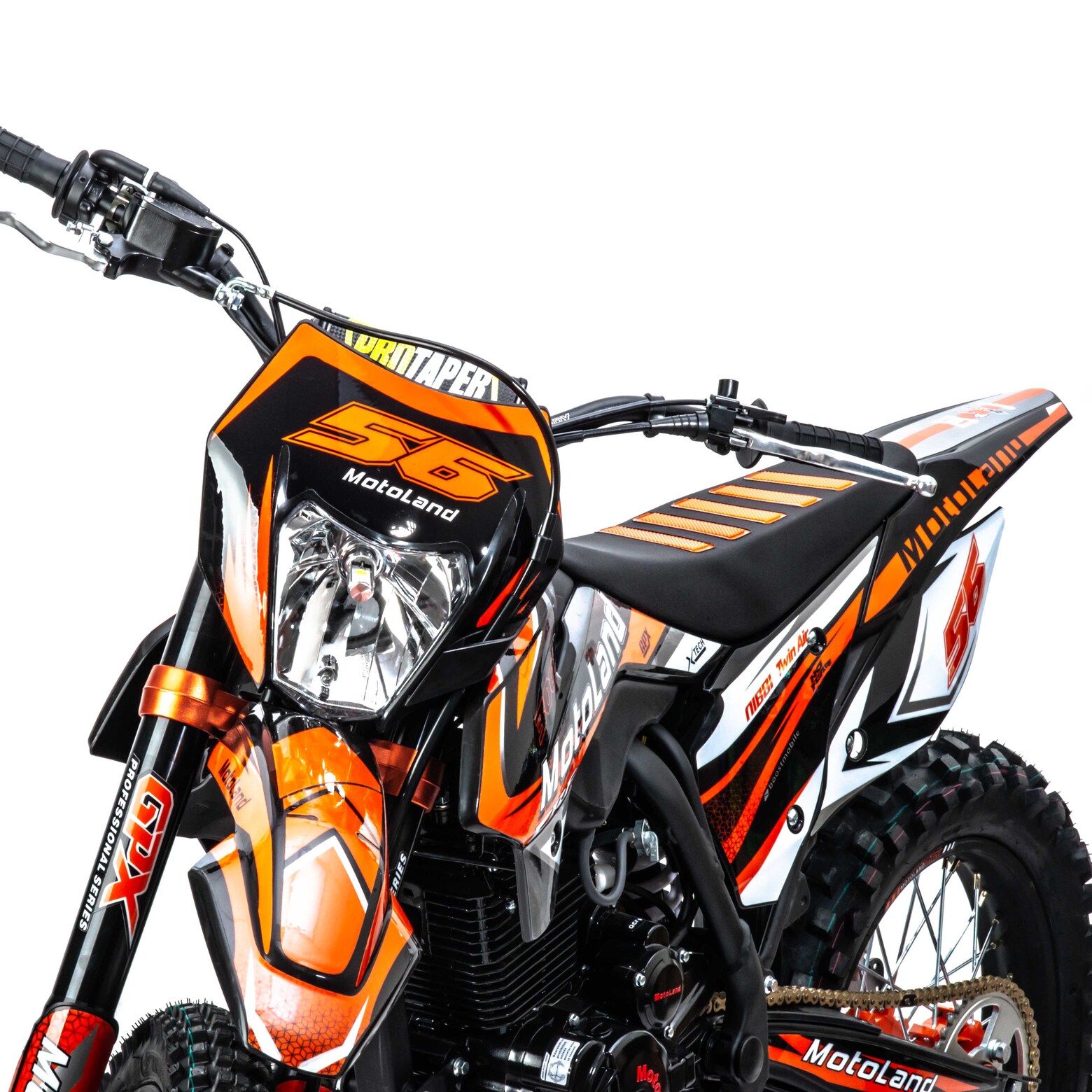 Встречайте! Обновленный кроссовый мотоцикл Motoland CRF300 с двигателем увеличенной мощности 175 FMM! Идеален для езды по бездорожью, т. к. имеет отличную проходимость на песке и мягком грунте.Объем двигателя 300 см3 и мощность 25 л. с. обеспечивает хорошую динамику разгона и высокую максимальную скорость.Коробка передач механическая, пятиступенчатая. Карбюратор NIBBI PE 30 оснащен резиновым патрубком, что обеспечивает снижение вибрации.Объём топливного бака 6 литров.Передняя подвеска — телескопическая, не регулируемая, перевёрнутого типа. Вилка GPX Professional оснащена клапанами для стравливания избыточного давления, что позволяет значительно повысить ресурс работы сальников.Задняя подвеска с прогрессией, амортизатор имеет регулировку преднатяг пружины.Рама мотоцикла полудуплексная, стальная.Сиденье кроссовое, с противоскользящим покрытием.Обода колес спицованные, стальные, черного цвета с алюминевыми, окрашенными литыми ступицами.Покрышки 80/100 "21 110/100 "18 с мощными грунтозацепами обеспечивают превосходное сцепление с грунтом и позволяют контролировать управляемость на нестабильных поверхностях кроссовых трасс.Размер заднеего колеса — 18 дюймов (450 мм), переднего — 21 дюйм (530 мм).Передние и задние тормоза дисковые, с надёжными двухпоршневым и однопоршневым суппортами соответственно.Руль GPX переменного сечения с алюминевыми литыми траверсами, выдерживает значительные нагрузки, в том числе при падениях.Высота по рулю и седлу позволяет чувствовать себя удобно как людям среднего, так и большого роста.Мотоцикл Motoland CRF 300 оснащён светодиодной фарой головного света. Система зажигания электронная (CDI). Запуск двигателя комбинированный ножным кикстартером и электростартером.