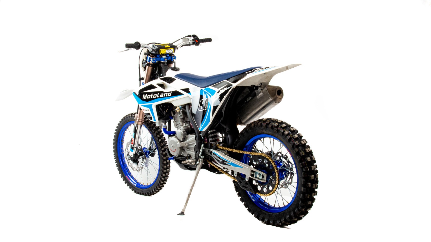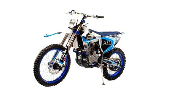 Мотоцикл Motoland XT300 STНадёжная техника оснащенная двигателем 174FMN-3 с водяным охлаждением. с кикстартером и электростартером, Мощностью 26 Л.С. на двигателе установлен Карбюратор NIBBI n34 с ускорительным насосом.Это полноразмерный кроссовый мотоцикл его база по осям составляет 1400 мм., и габаритами 2100х800х1120 мм. Высота по седлу составляет 950 мм. Передние и задний амортизаторы с регулировками.За счет сбалансированной базы мотоцикл имеет отличную управляемость, а конструкция рамы и особенности настройки подвески GPX способствуют максимальному поглощению неровностей дорожного покрытия, а так же усиленная прогрессия на игольчатых подшипниках. Алюминиевые обода c антибуксаторами, усиленными спицами и ступицами.На кроссовой резине 80/100-21 / 110/100-18На мотоцикле установлена обновлённая тормозная система обеспечивающая отличные тормозные характеристики. Глушитель с уникальным дизайном прямоточного типа, полностью алюминиевый для облегчения веса.