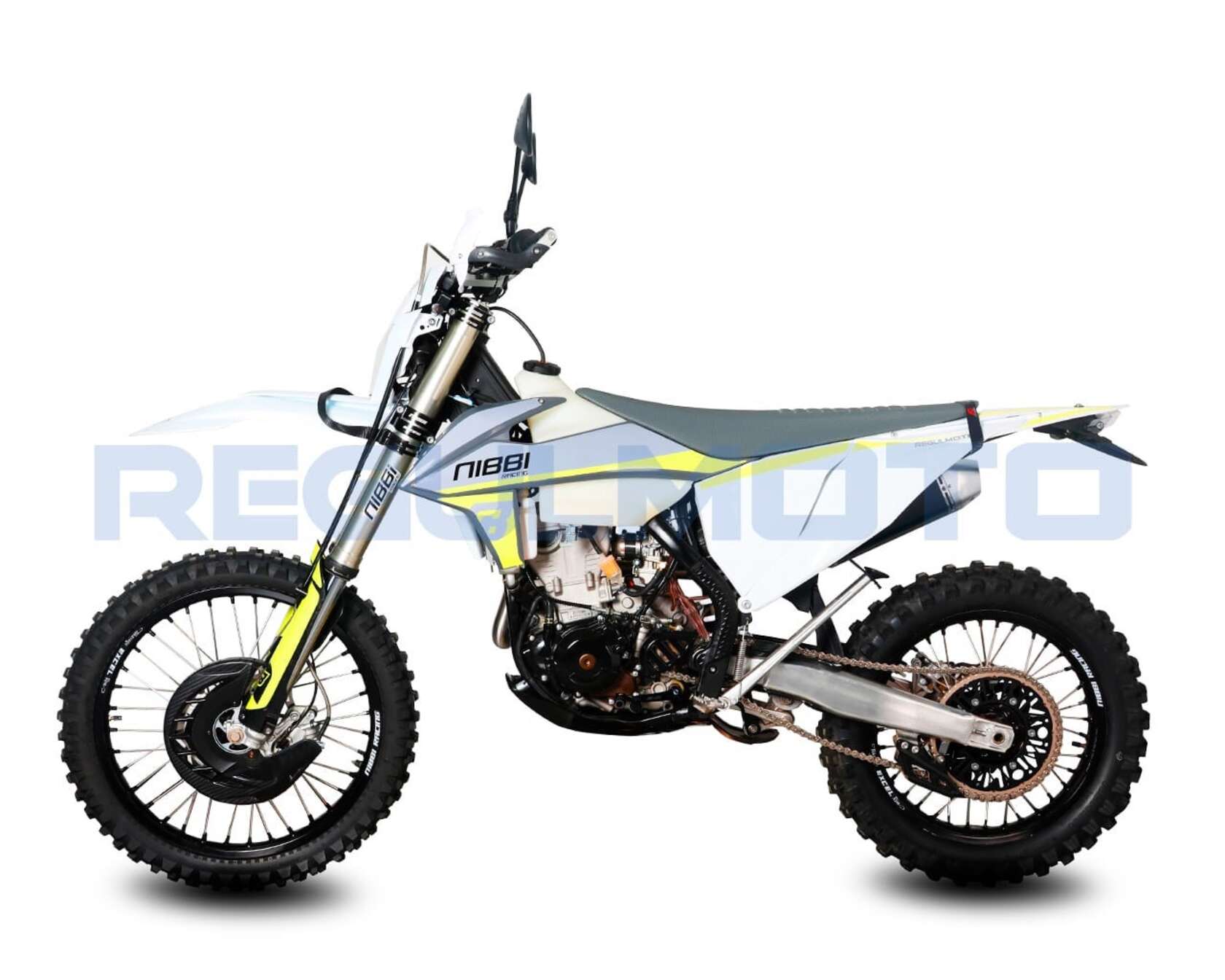 Мотоцикл Regulmoto NIBBI 300.Двигатель Zongshen 182FMM, 6 передач, два распредвала. Карбюратор Nibbi FCR39, специально разработанный компанией Nibbi для этого мотоцикла. Мощность двигателя составляет 36л.с. Двухкартриджные передние амортизаторы 48мм, с полной регулировкой и задний от компании NIBBI Racing, доработаны инженерами и гонщиками NibbiRacing (имеющими опыт ралли Париж-Дакар). Влагозащищённые разъёмы электропроводки. Доработаны CDI, реле стартера, регулятор напряжения. Глушитель- NibbiRacing. Траверса фрезерованная - NibbiRacing, Колеса и обода из сплава 7050 от компании GLM - этот завод выпускает ступицы под бендами Talon, обода Excel. Шины - Kenda. Двухсоставная ведомая звезда из сплава 7075 NibbiRacing, Приводная цепь NibbiRacing. Маятник алюминиевый NibbiRacing. Тормозная система - собственная разработка NibbiRacing, Руль из сплава 7075, прогрессия NibbiRacing, фрезерованный рычаг переключения передач, Радиаторы охлаждения увеличенной площади, фрезерованная защита радиаторов, вентилятор охлаждения Panasonic, Новый воздушный фильтр NibbiRacing, который создан из негорючего материала.Складные фрезерованные рычаги тормоза и сцепления. На заводе установлены: защиты рук, защита тормозных дисков, защита картера, защита крышек двигателя, защита маятника, защита рамы, стропы. Складные зеркала, приборная панель, указатели поворота, стоп сигнал, звуковой сигнал.На заводе мотоцикл промазан смазкой Maxima, ГСМ - в амортизаторах, двигателе - Maxima, Антифриз до -60.Каждый мотоцикл проходит проверку качества сотрудниками NibbiRacing!На сегодняшний день это первый мотоцикл из Китая сделанный полностью из топовых комплектующих, доработанный гонщиками команды NibbiRacing и не имеющий аналогов на Российском рынке.