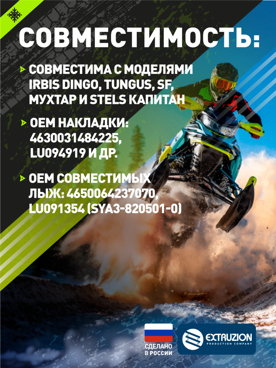 Универсальность и совместимость. Подходит для снегоходов Dingo, Тунгус и других марок Широкая совместимость с различными моделями снегоходов Универсальные размеры для удобства установки