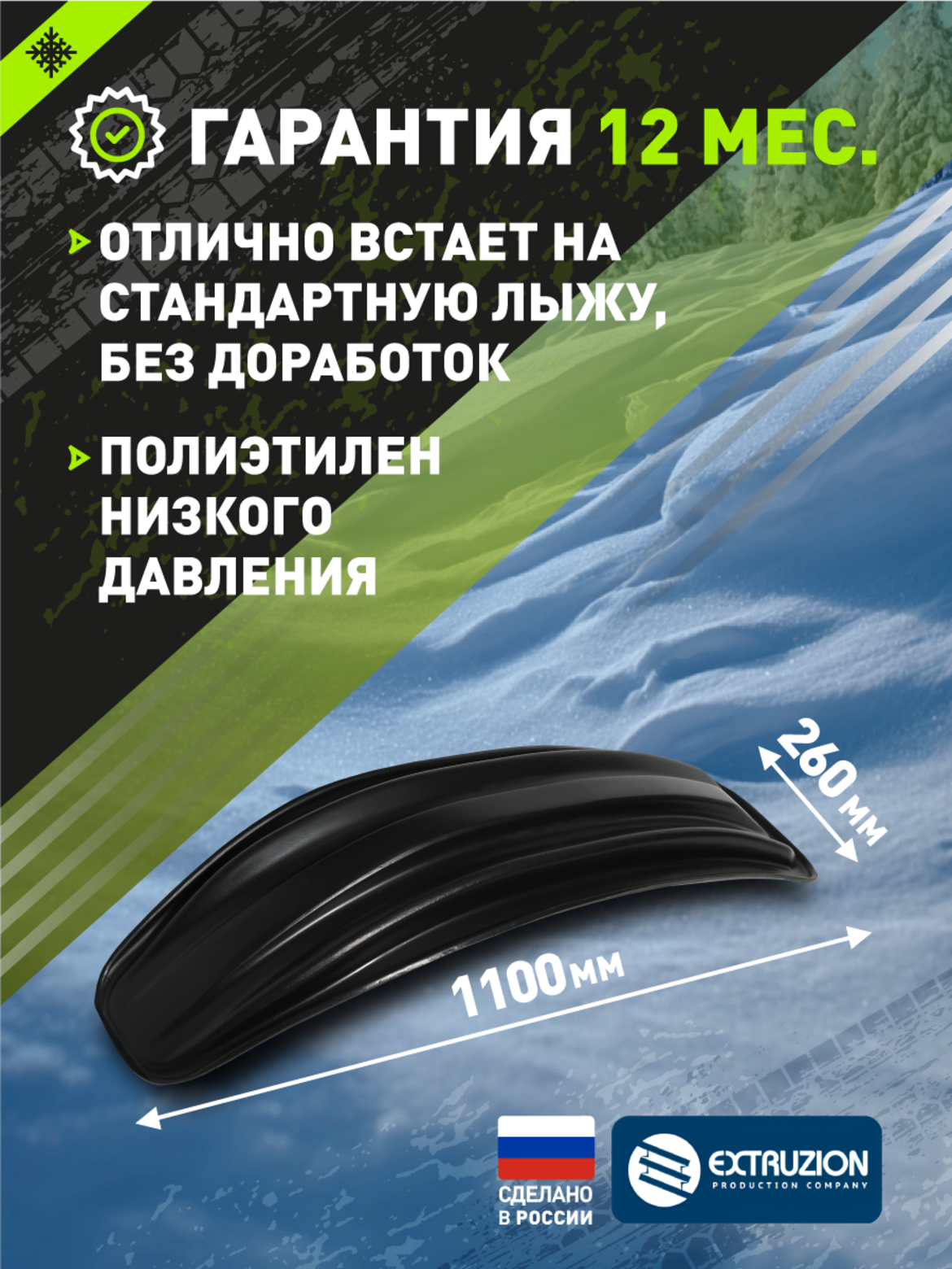 Надежная защита и долговечность. Защищает оригинальные лыжи от сколов, царапин и абразивного износа Изготовлена из морозостойкого ПНД, сохраняющего гибкость при температуре до -60C Принимает на себя основную нагрузку, значительно продлевая срок службы штатных лыж