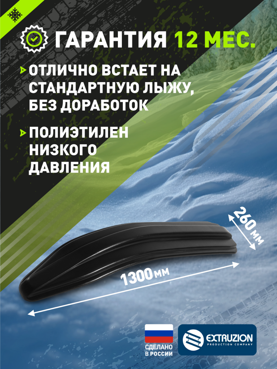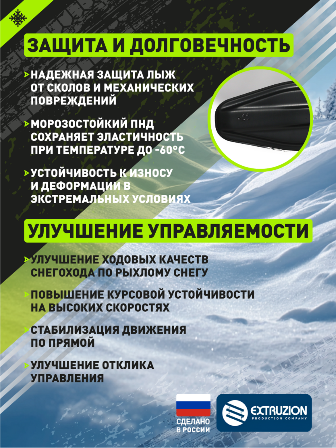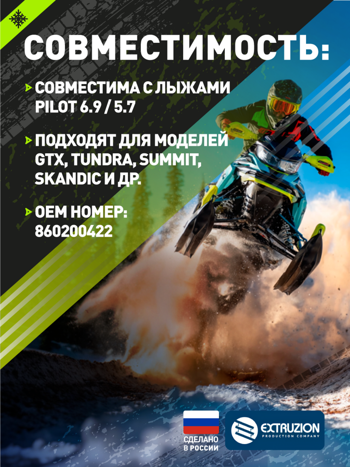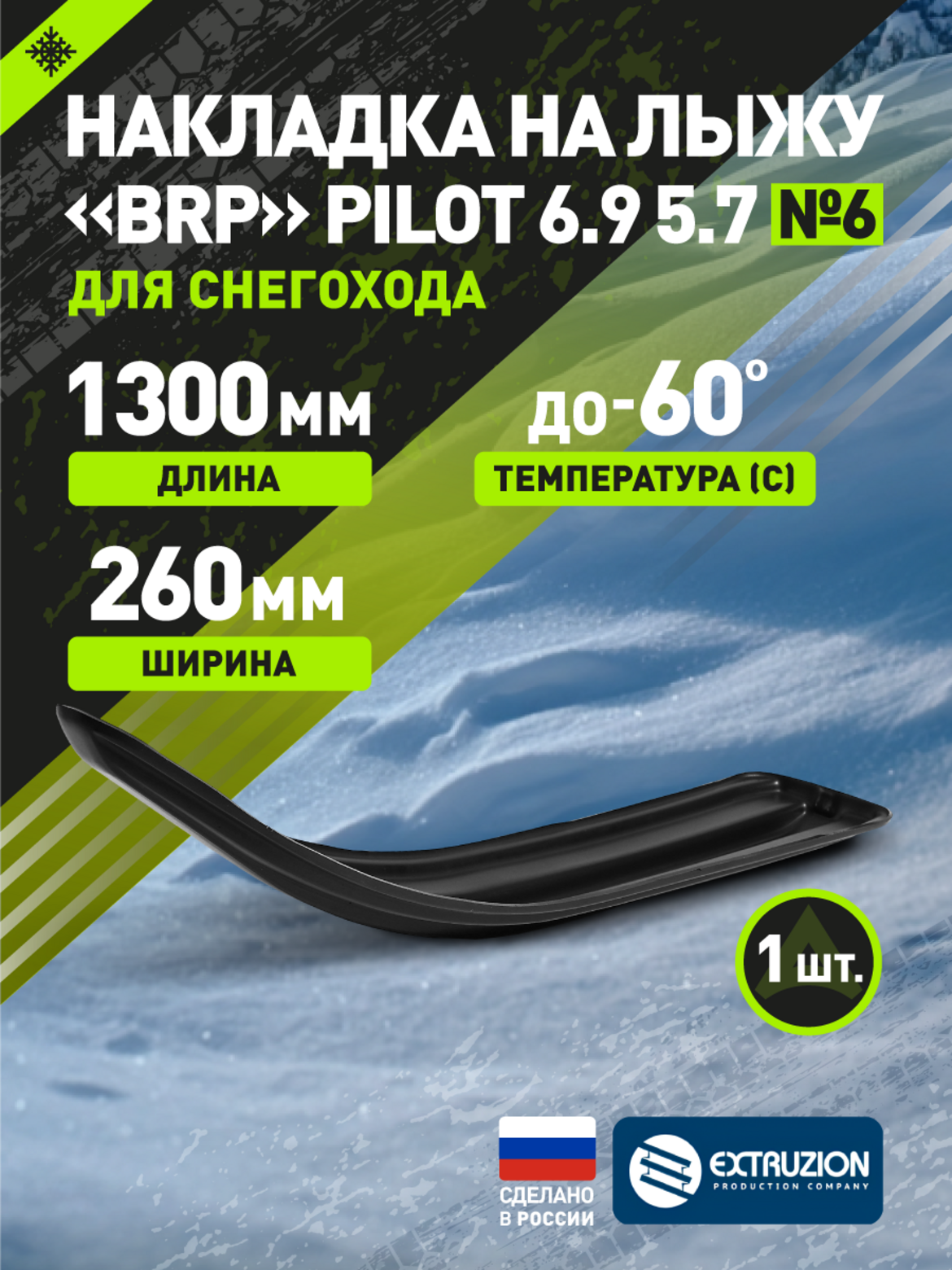 Накладка на лыжи «BRP» для моделей Pilot 6.9 / 5.7 – профессиональное улучшение характеристик Специализированный аксессуар для снегоходов BRP серии Pilot. Разработан для точного соответствия геометрии лыж, обеспечивая максимальную эффективность.Технические характеристики:• Производитель: Россия, ООО "ЭКСТРУЗИОН"• Материал: морозостойкий ПНД• Размеры: 1300×260×6 мм• Цвет: черный• Комплектация: без крепежа• Гарантия: 12 месяцев• Рабочий диапазон: -60C до +60C• Совместимость: BRP Pilot 6.9 / 5.7Преимущества:• Идеальное соответствие – точная посадка на лыжи Pilot• Улучшенная управляемость – повышенная курсовая устойчивость• Защита от износа – продление срока службы лыж• Повышение проходимости – лучшая плавучесть в глубоком снегу• Сохранение гибкости – эластичность при экстремальных температурахОбласть применения:• Снегоходы BRP серии Ski-Doo• Модели с лыжами Pilot 6.9 и 5.7• Спортивная и туристическая эксплуатация• Экстремальные зимние условия• Профессиональное использованиеНакладка «BRP» – оптимальное решение для владельцев снегоходов Ski-Doo. Сохранение оригинальных характеристик с дополнительной защитой и улучшением ходовых качеств.