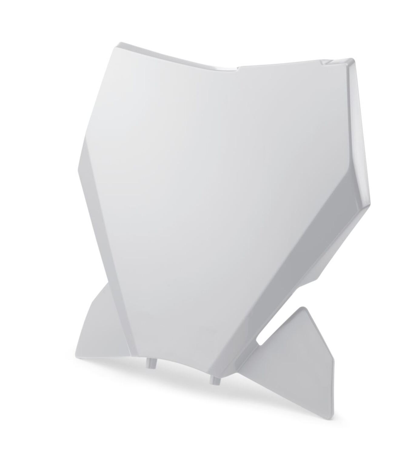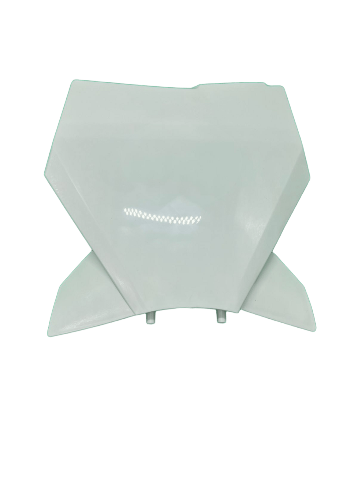 Передний номерной щиток белого цвета под стиль KTM 2024 года. Выполнен из прочного пластика, устойчивого к ударам и погодным условиям. Идеально подходит для тюнинга и замены оригинальных элементов на современных питбайках и мотоциклах с пластиком в стиле KTM.