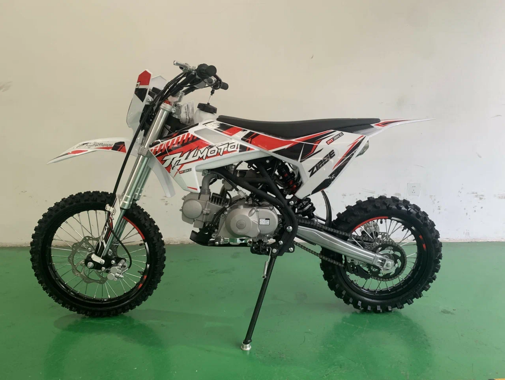 Китайский бренд JHL уверенно покоряет мировой рынок, представляя новинки мототехники. Модельный ряд производителя отличается не только внешними характеристиками, но и качественным техническим исполнением. Многие покупатели, задумываясь над тем, какой мотоцикл купить новичку в 2023 году, остановили выбор на модели Z125E. Это хит продаж, успевший завоевать популярность среди мотолюбителей.Характеристики моделиПитбайк Z125E комплектуется 4-хтактным бензиновым мотором ZS154FMI-3 с воздушным охлаждением. Топливо подается через японский карбюратор Nibbi PE19. Запуск мотоцикла производится кик- и электро-стартером. Объем топливного бака составляет 3 л, расход бензина питбайка - 2,2 л, то есть на полном баке можно проехать больше 100 км. Эндуро выдерживает нагрузку 90 кг. и развивает скорость до 85 км/ч. Если вы решите купить питбайк 125 кубов для 14 лет, данная модель подойдет по всем характеристикам.Внешне модель Z125E выглядит модно и современно. На алюминиевых колесах со спицами установлены шины Nylon от Тайваньского бренда моторезины с увеличенными протекторами. За мягких ход отвечает телескопическая подвеска MNT и регулируемый моноамортизатор. Дисковые двухпоршневые тормоза гарантируют 100% экстренное торможение в случае необходимости. Мотолюбители, которые приняли решение купить мини питбайк модели Z125E, могут принимать участие в мотозаездах, выезжать на дороги общего пользования на эндуро нельзя.