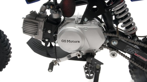 Питбайк Motoland GS Motors S11 идеально подходит для поездок по грунтовым дорогам и бездорожью для детей которые уже научились ездить на маленьких мотоциклах объемом 50 куб.см. Хорошо чувствует себя на мягком и среднем грунте.Питбайк прост в управлении и не требует специального ухода, подойдёт детям до 13 лет.Передняя подвеска — телескопическая нерегулируемая вилка. Задняя подвеска маятниковая с моноамортизатором. Руль 22 мм с высоким подъёмом и перекладиной удобен для мотоциклистов разного роста.Питбайк весит всего 55 кг, при этом выдерживает вес до 65 кг. Колёса спицованные, металлические. Размер заднего колеса — 10 дюймов, переднего — 12 дюймов. Тормоза дисковые, передний тормозной суппорт двухпоршневой, задний — однопоршневой.Питбайк оснащён карбюратором JINGKE и одноцилиндровым четырёхтактным двигателем с воздушным охлаждением. Надёжный мотор мощностью 8 л. с. и объемом 110 см³ разгоняет питбайк до 70 км/ч. Трансмиссия - 4х ступенчатая. Система зажигания электронная (CDI). Запуска двигателя - кикстартер.Покрышки с шипами и высоким грунтозацепом идеальны для бездорожья. Мощность мотора и небольшой вес питбайка позволяют ему преодолевать значительные препятствия и хорошо заходить в подъёмы.Питбайк относится к недорогим моделям, которые при должной эксплуатации работают без сбоев. При необходимости в нём легко сменить любую повреждённую деталь.
