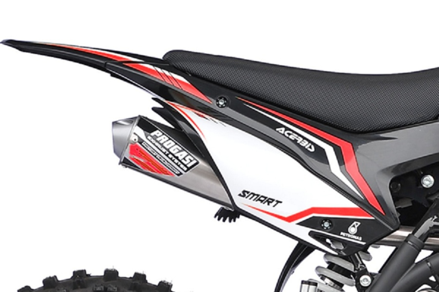 PROGASI Smart 125PROGASI Smart 125 2023 модельного года представляет собой максимально доработанную версию уже зарекомендовавшего себя питбайка. Максимум мощности и максимум спортивности! Внимание к деталям заложено в ДНК этого пита. Новая графика, порошковая окраска рамы, USB, новые усиленные тормоза, ручка газа Nibbi Racing и многое другое уже установлено в твоем новом питбайке от PROGASI.Сиденье по технологии AcerbisФирменное нескользящее сиденье PROGASI, выполненное по технологии Acerbis anti-slip grip, держит любого райдера как суперклей: специальное ребристое водонепроницаемое покрытие позволяет чувствовать себя комфортно в любых погодных условиях.Дополнительный расширительный бачок тормозовТормоза – это важнейший компонент питбайка, от которого напрямую зависит безопасность райдера, а также скорость прохождения поворотов. Для безупречного результата на всех моделях PROGASI установлены дополнительные расширительные бачки и армированные шланги тормозной системы. Спереди установлена 2-поршневая тормозная система и 1-поршневая сзади.Выхлопная система PROGASIБрендированный алюминиевый глушитель PROGASI выполнен с сеткой без узкой флейты, как у полноразмерных кроссовых мотоциклов. Добавлен резонатор Megabomb: увеличение мощности c нижнего до среднего диапазона оборотов и более "сочный" звук двигателя.Приводная цепь ChohoChoho выпускает мотоцепи, в конструкции которых есть специальное уплотнительное кольцо. Выполненное из твёрдой резины, кольцо располагается между внутренней и наружной пластинами роликовой цепи: она не пропускает пыль снаружи и задерживает смазку внутри. Таким образом, уплотнительное кольцо обеспечивает отсутствие чрезмерного растяжения, долгий срок службы цепи, которая не требует смазывания, а также отличается пониженным уровнем шума.Усиленные ручки тормоза и сцепленияУсиленная конструкция защищает ручки от повреждений. Также использована геометрия легкого выжима.Короткоходная ручка акселератораНезаменимый элемент при использовании байка на крутых подъемах, а также в местах с различными препятствиями, для прохождения которых надо быстро откручивать ручку газа, не перехватывая руль и не теряя управление. Короткоходная ручка акселератора также позволяет самостоятельно регулировать положение открывающего карбюраторную заслонку троса, благодаря чему райдер может подобрать необходимое для разгона усилие кисти, наиболее оптимальное для его стиля езды.Проверенное качествоВсе мотоциклы PROGASI имеют Европейский сертификат качества. С завода залито масло Shell 10w40. Применяются влагозащищенные разъемы проводки. Все подшипники обработаны специальной консистентной смазкой. «Details matter» (“Детали имеют значение”) - слоган рожденной в Каталонии компании PROGASI.