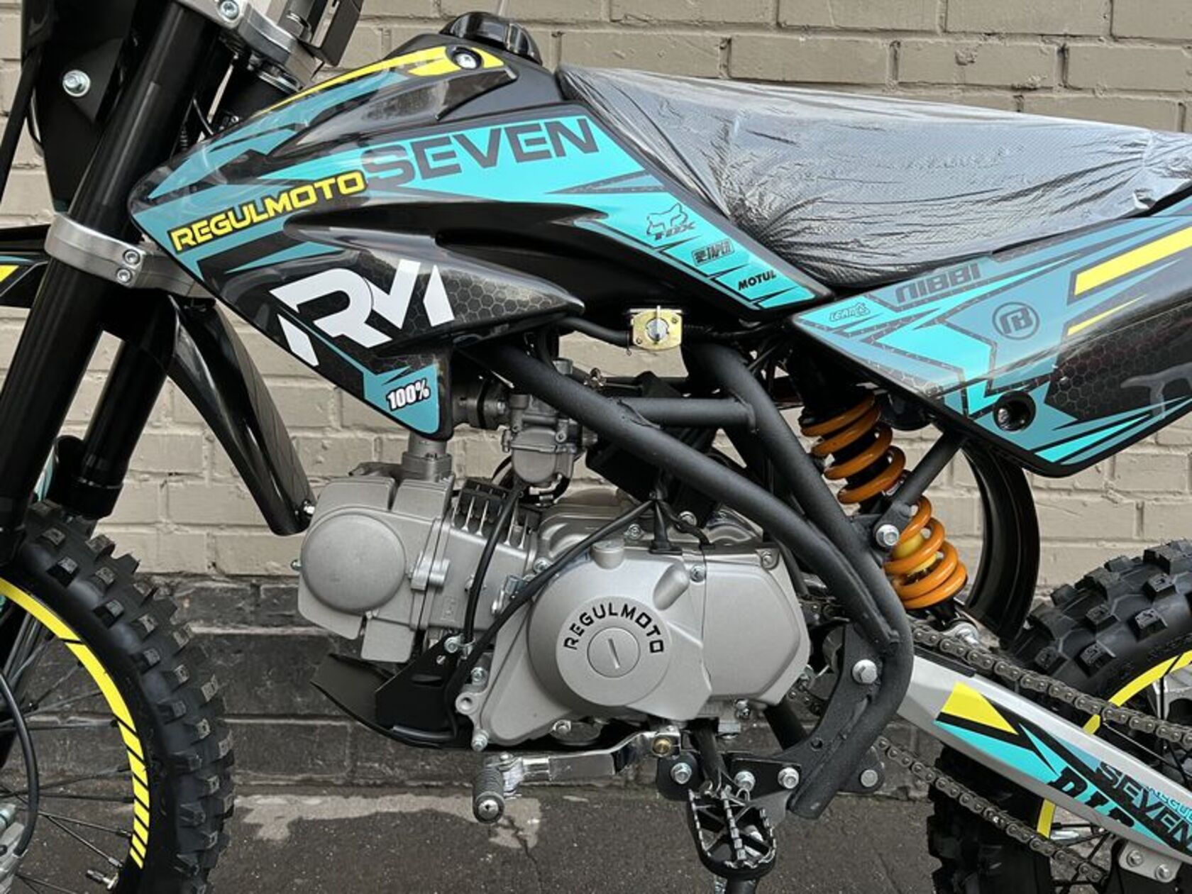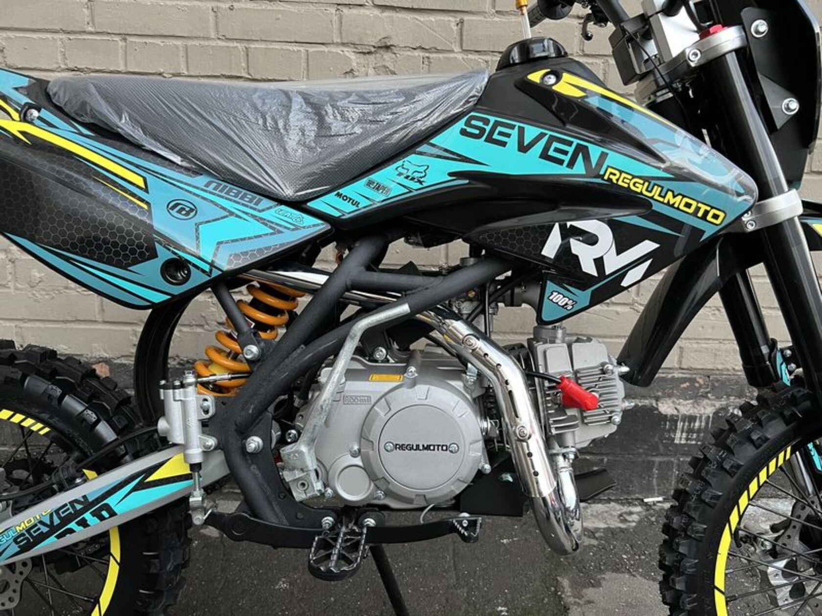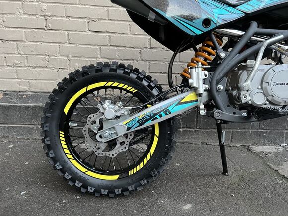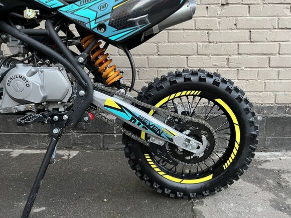 .Представляем вниманию поклонников офф-роада и фри-райда питбайк Regulmoto Seven – новинку мототехники Regulmoto модельного ряда 2020 года. Regulmoto Seven – оптимальный выбор для райдера, который позволит своему владельцу совершенствовать навыки управления мототехникой на треке мотостадиона, а также получать максимальное удовольствие от офф-роад рейдов.В раме Regulmoto Seven установлен 125-кубовый 4-тактник YX с электростартером– этот двигатель отлично себя зарекомендовал в качестве надежного и простого силового агрегата. Подготовкой топливной смеси занимается карбюратор Nibbi PE19. Запуск мотора возможен как при помощи кнопки электростартера, так и привычной лапкой кика.Колеса питбайка размером 17/14 дюймов с усиленными алюминиевыми ободьями на 36 спиц «обуты» в качественную кроссовую моторезину Kenda. Установленные на колесах буксаторы предотвратят проворачивание покрышки и защитят камеры от возможных повреждений. Питбайк комплектуется фарой головного света; она включается при помощи поворота ключа в замке зажигания. В качестве элементов защитного обвеса используются пластиковые обтекатели типа CRF.Подбор комплектующих свидетельствует о полной готовности питбайка к покорению бездорожья. Среди стоковых компонентов мини-мотоцикла стоит отметить: