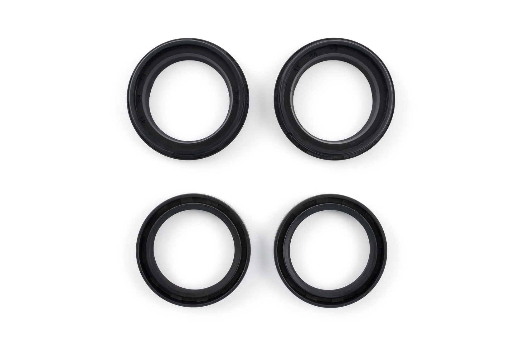 Полный комплект для обслуживания передней вилки мотоцикла. Включает 2 сальника размером 41×54×11 мм и 2 пыльника размером 41×54×13 мм. Предназначен для полного восстановления герметичности и защиты вилки на обоих перьях.