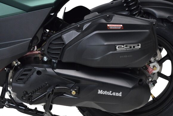 Скутер Motoland Tank - отличный вариант для загородных поездок и рыбалки: имеет множество дополнительных защит и закрытий, колеса 12" с резиной для поездки по грунтовой дороге и асфальту.Брутальный внешний вид и черный цвет делает его не похожим на другие скутера. Дополнительные ДХО, светодиодные поворотники и стоп-сигнал.На скутере установлен одноцилиндровый четырехтактный двигатель 157 QMJ мощностью 10 л/с и рабочим объемом 150 см3 с принудительным охлаждением, что позволяет ему не перегреваться даже в сильную жару. Система запуска кикстартер + электростартер. Трансмиссия - вариатор, не требующий манипуляциях с переключением скоростей. Это очень удобно при эксплуатации и не вызывает сложностей, просто сел, повернул ручку газа и поехал. Все тормоза - дисковые гидравлические.Подвеска - передняя вилка телескопическая и два задних амортизатора. Колесные диски литые алюминевые, на которые установлены качественные покрышки 120/70-12".Выдерживает нагрузку до 150 кг, что позволяет перевозить одного пассажира. Под сиденьем есть большое багажное отделение + площадка для крепления дополнительного кофра. Приборная панель — электронная, с очень крупными, легко читаемыми цифрами и часами; со всеми необходимыми указателями.Габариты: 1900 х 710 х 1170 мм. (без учета зеркал)