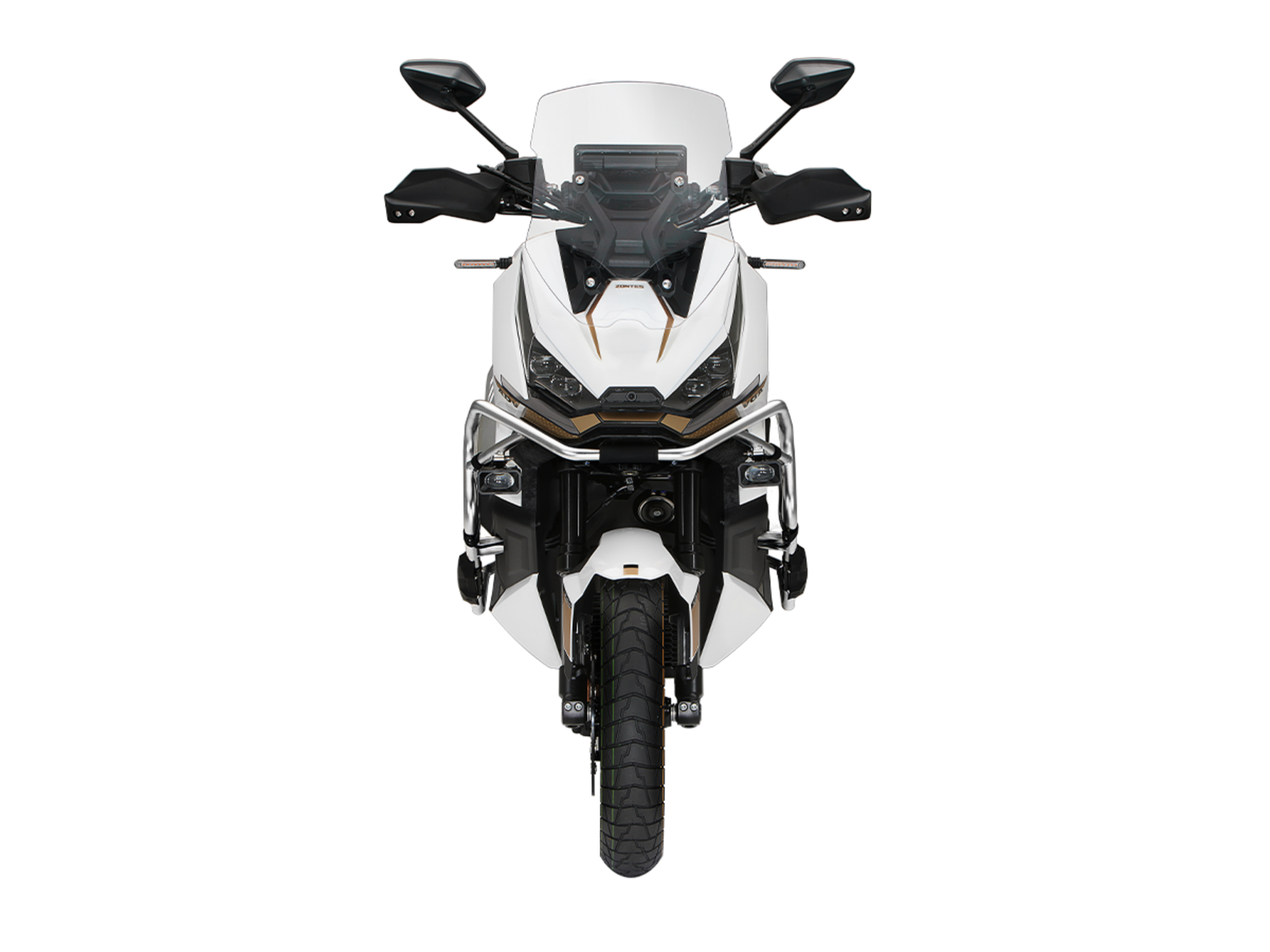 Скутер ZONTES ZT368-G – максискутер двойного назначения, готовый пронестись по улицам города за его пределы и отправиться по грунтовым тропам прокладывать свой маршрут туда, куда вам потребуется. Регулируемая подвеска с перевёрнутой телескопической вилкой спереди обеспечит отличную управляемость и устойчивость в любых условиях.Силовая установка представлена одноцилиндровым 4-тактным двигателем. Двигатель имеет объём 368 см³ и обеспечивает мощность в 38,8 л.с. Оснащён инжектором BOSCH, системой жидкостного охлаждения и вариатором. Запуск двигателя осуществляется с помощью бесключевого доступа.Ёмкость топливного бака 17,5 литра.Колёса имеют диаметр 17 дюймов спереди и 14 дюймов сзади. Для подвески спереди используется телескопическая вилка перевёрнутого типа, а сзади установлены 2 гидравлических амортизатора. Гидравлические дисковые тормоза произведены компанией J.JUAN, входящей в холдинг BREMBO. Мотоцикл также оснащён 2-канальной ABS-системой, противобуксовочной системой TCS System и датчиками давления в шинах.ZT350-G оборудован яркой LED-фарой, мультимедийной приборной панелью с TFT-дисплеем, имеются 2 USB-порта.Габариты скутера 2230х925х1290 мм. Колёсная база 1560 мм. Высота по седлу 795 мм. Вес 198 кг.