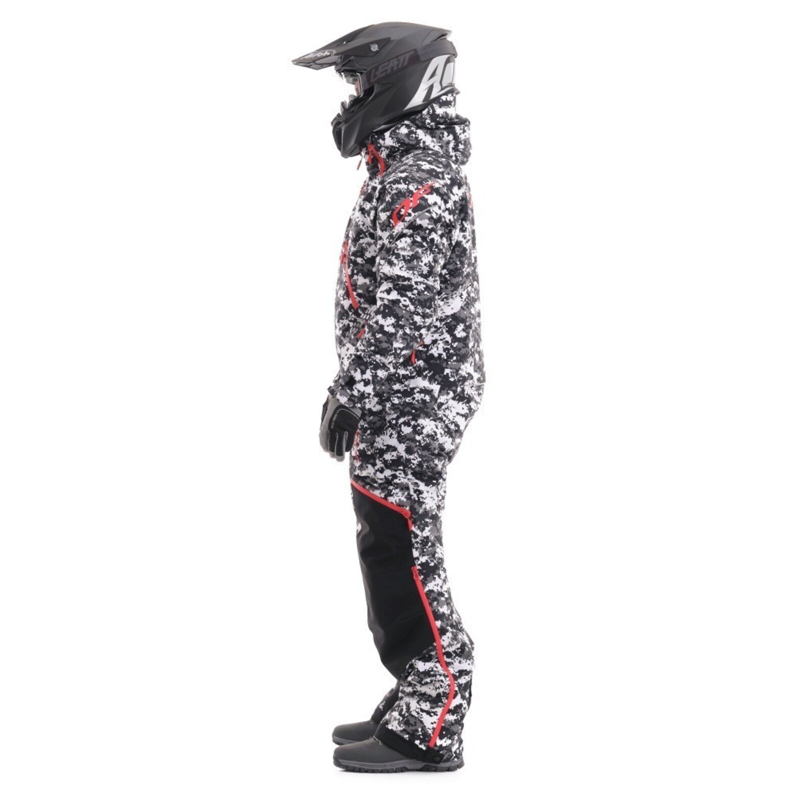 Комбинезон предназначен для снегохода и сноубайка. Надежно защитит от ледяного ветра и мокрого снега. Ткань верха дополнительно содержит тефлоновое водоотталкивающее покрытие. Внешние молнии влагозащитные. Проклеены все швы. На рукавах есть эластичные манжеты, на штанинах снегозащитные юбки с петлёй для фиксации к ботинкам. При закрытой вентиляции и карманах комбинезон герметичен.Функционал комбинезона тщательно продуман и зарекомендовал себя среди снегоходчиков и сноубайкеров. Светоотражающие элементы есть со всех сторон. Семь карманов покрывают все потребности райдера, в том числе для ски-паса, телефона, и теплые, для согревания рук. Есть удобная петля под тангенту рации и кольцо D-ring для ключа горного снегохода. Центральная молнии с тремя замками: открывается сверху и снизу. Несъемный капюшон с двойной утяжкой. Для удобства приема пищи и воды во время стоянки – есть расширения на воротнике, защищает от ветра в расстёгнутом виде. В помещении можно снять верхнюю часть комбинезона и воспользоваться регулируемыми лямками - подтяжками.