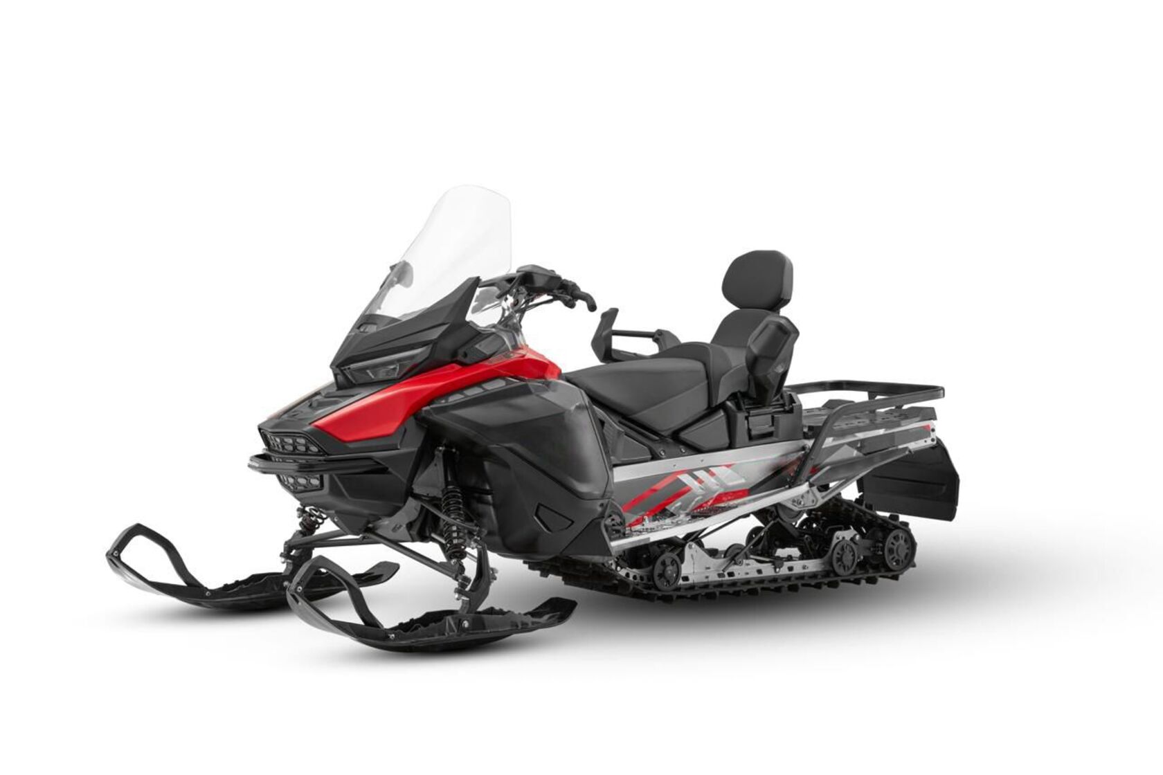 Снегоход Таврида — это техника, созданная для тех, кто не боится зимы и предпочитает свободу движения там, где дороги заканчиваются. В его основе — современный трёхцилиндровый рядный двигатель объёмом почти 900 кубических сантиметров. Это четырёхтактный мотор с двумя верхними распредвалами (DOHC) и жидкостным охлаждением, что гарантирует стабильную работу в самых суровых условиях. Снегоход развивает до 97 лошадиных сил и выдаёт внушительные 93 Н·м крутящего момента на пике мощности. Этой силы хватает не только для уверенного разгона по укатанной трассе, но и для того, чтобы пробиваться сквозь глубокий снег.Система питания — современный электронный впрыск топлива (EFI), благодаря которому двигатель запускается легко, работает ровно и экономично расходует топливо. Для запуска используется электростартер, что делает эксплуатацию ещё комфортнее. Рекомендуемое топливо — привычный бензин АИ-92 или АИ-95.В движение снегоход приводит надёжный вариатор CVT, который сочетает простоту управления с эффективной передачей мощности. Конструкция предусматривает несколько режимов — пониженный, повышенный, нейтраль, а также электронный реверс для движения назад. Такое решение позволяет одинаково уверенно чувствовать себя и при медленном маневрировании, и на высоких скоростях.Ходовая часть снегохода продумана до мелочей. Спереди установлена независимая подвеска с А-образными рычагами и стабилизатором поперечной устойчивости. Пружины в сочетании с масляными амортизаторами обеспечивают мягкий ход, сглаживая неровности и добавляя уверенности в управлении. Сзади используется склизовая подвеска с ограничителем хода, что позволяет эффективно распределять нагрузку и сохранять устойчивость даже при перевозке груза. Тормозная система у «Тавриды» также внушает доверие: дисковый гидравлический тормоз с двухпоршневым суппортом обеспечивает надёжное замедление в любых условиях, будь то ледяная корка или рыхлый снег.Снегоход впечатляет и своими скоростными характеристиками: максимальная скорость достигает 172 км/ч, что делает его отличным выбором не только для утилитарных задач, но и для любителей адреналина. При этом высокая тяга на низких оборотах позволяет уверенно двигаться даже по тяжёлой целине.Конструкция шасси также подчеркивает универсальность модели. Длинные лыжи (1070 мм) и гусеница шириной почти полметра создают оптимальное пятно контакта, а регулируемая ширина колеи позволяет подстраивать поведение снегохода под стиль езды. Высота грунтозацепа в 38 мм даёт отличное сцепление на рыхлом снегу.Несмотря на внушительные размеры (3400 × 1170 × 1500 мм), снегоход остаётся достаточно удобным в управлении. Высота седла подобрана так, чтобы обеспечивать комфорт при длительных поездках: до сиденья всего 978 мм, а значит посадка остаётся устойчивой и естественной. Сухой вес техники составляет 315 кг, а грузоподъёмность достигает 238 кг — этого достаточно, чтобы взять с собой всё необходимое снаряжение или пассажира. Крупный топливный бак объёмом 42 литра позволяет совершать длительные путешествия без частых дозаправок.Снегоход Таврида — это мощь и надёжность, упакованные в современный дизайн и продуманную конструкцию. Он одинаково хорошо подходит для активного отдыха и серьёзной работы, уверенно чувствуя себя и на трассе, и в условиях настояще