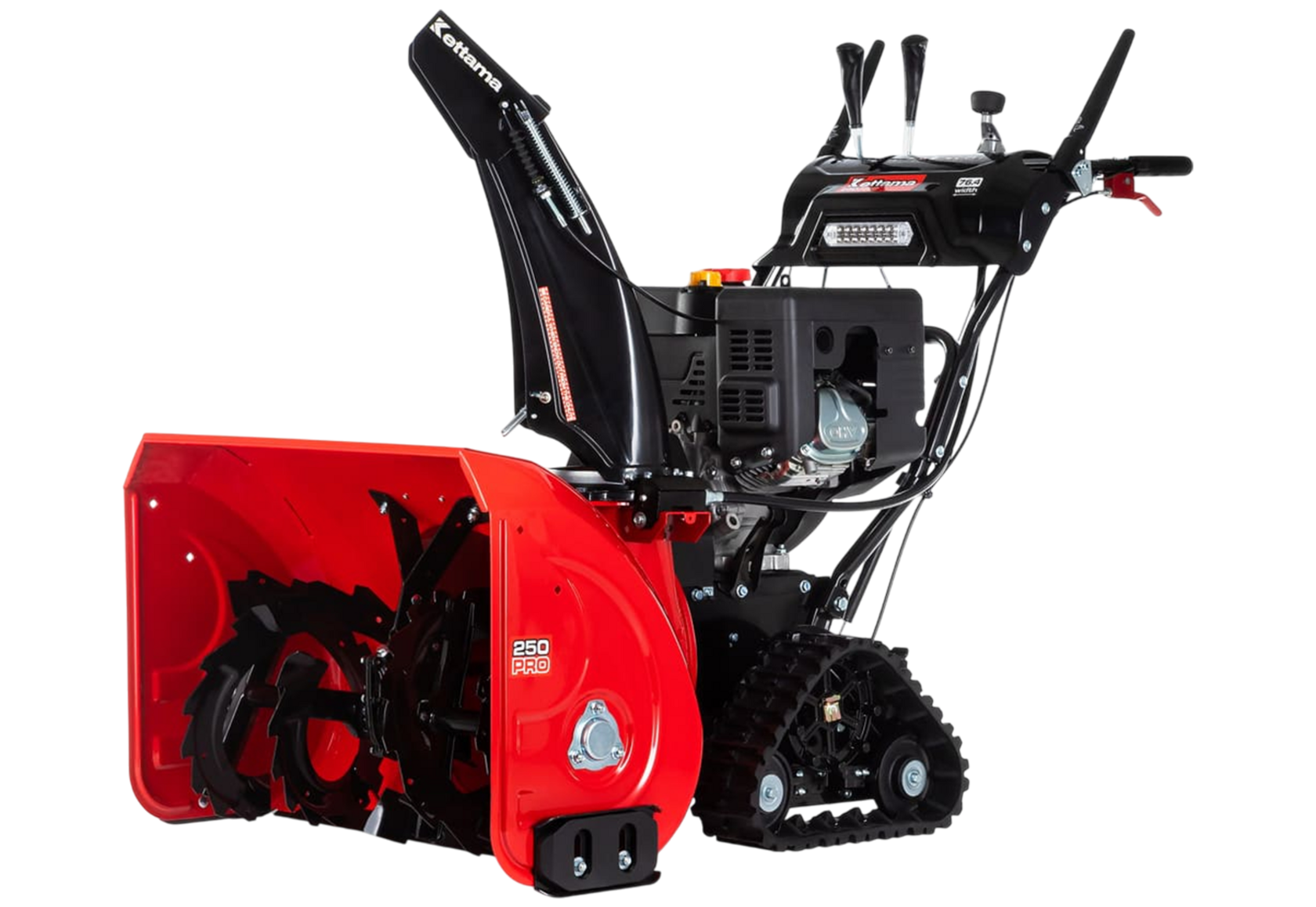 Снегоуборщики Kettama 250 Pro, 300 Pro, 400 Pro, 500 Pro относятся к серии Kettama Pro. Кеттама Pro — это класс профессиональной гусеничной техники, которую от бытовых и полупрофессиональных снегоуборщиков отличает повышенная производительность, возможность долгое время обрабатывать любой тип снега, а также высокая рабочая ресурсность.Конструктивные особенности этого класса позволяют увеличить производительность в зависимости от модели от 30 до 60 т/ч, а также способность обрабатывать даже самый плотный снег с удельным весом до 600-800 кг/м3 (мокрый фирт и глетчерный лед).В моделях серии Kettama Pro представлена гусеничная техника с высокой шириной уборки и мощностью от 10 л. с. Кроме того, на некоторых моделях установлена современная гидростатическая трансмиссионная система. Всё это значительно увеличивает КПД снегоуборщика, позволяя максимально длительное время непрерывно эксплуатировать его в экстремально тяжёлых условиях русской зимы.