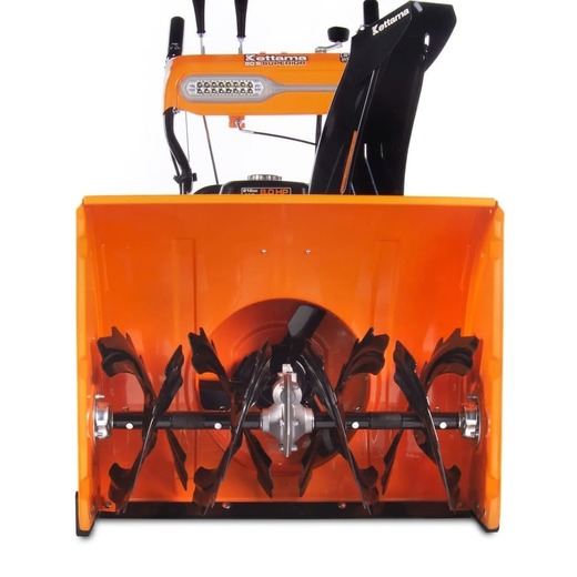 Снегоуборочная машина Kettama 80S Superior представляет собой «младшую» модель линейки Superior. Однако она также обладает всеми её основными преимуществами. Снегоуборщики линейки Superior, выпускаемые компанией Kettama, представляет собой класс полупрофессиональной техники. Основными отличиями от класса бытовой техники являются повышенная производительность и рабочая ресурсность.На Kettama 80S установлены безвоздушные шины SnowLink с технологией Runflat. Эти шины с глубоким протектором исключают пробуксовку агрегата на обледенелом участке. Увеличенное сцепление даёт возможность достичь показателей производительности практически равных гусеничному шасси. При этом, более низкий общий вес снегоуборщика позволяет достигать на этой модели показателей производительности до 5 т/ч со снегом плотностью до 500 кг/м3 (сброшенный с крыш). На свежевыпавшем влажном снегу плотностью до 200-230 кг/м3 этот снегоуборщик способен достигать производительности до 15 т/ч. Шины позволяют достигать высокого сцепления и повышенной производительности даже во время поворотов.Возможность эффективно перерабатывать снег разных типов сложности связана с конструкторским решением сочетания высокой мощности (8,5 л. с.), небольшой ширины уборки (660 мм) и усиленным сцеплением 14-дюймовых безвоздушных шин Runflat. Небольшая ширина ковша даёт возможность эксплуатировать технику на любом приусадебном участке с узкими дорожками. Повышенная высота ковша даёт возможность применения этой техники при работе с более высоким снегом. Однако это же создаёт определённые ограничения в работе с лежалым снегом с элементами сухого фирна. Дефлектор из усиленного металла позволяет менять направление выброса снега на 190 градусов при помощи рукоятки на корпусе машины. Стальной шнек с добавлением хромомолибденового сплава позволяет эффективно справляться даже со слежавшимся снегом.Скорость уборки: 6 передач вперёд и 2 назад, что позволяет выбрать оптимальный режим работы в зависимости от сложности задачи и типа снега. Металлическая рама с добавлением холодостойкого нихрома обеспечивает долговечность конструкции и возможность работать даже при экстремально низких температурах. Снегоуборщики Kettama. Наша техника станет для вас отличным подспорьем в уборке льда. Надёжный и стабильный двигатель с длительной гарантией, обеспечиваемой опытными специалистами, всегда вас выручит в момент нужды и избавит от лишней мороки. При этом нашим инженерам удалось добиться достойного соотношения качества к цене. Это позволит облегчить жизнь Вам и Вашей семье, не получив серьёзного урона по кошельку.Снегоуборщики Kettama являются одними из самых передовых и технологичных на российском рынке. Несмотря на свой привлекательный внешний вид, дизайн предельно прост и функционален, что повышает надёжность техники, исключая случайные поломки и снижая частоту обслуживания даже при регулярном использовании. Специально разработанные шнеки-ледорубы с агрессивным строением лезвий позволяет избавляться от любого, даже замёрзшего снега, и даже льда. Благодаря им Вы просто не будете знать, что есть непреодолимые препятствия. Специально разработанная система направляющих механизмов позволяют регулировать наклон и положение ковша, давая возможность адаптировать механизм под любые ситуации. Проверенные временем и сотнями ты
