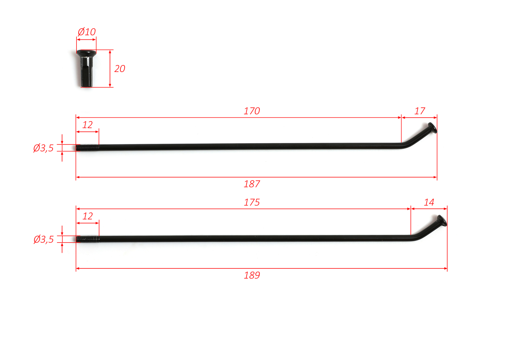 Спицы комплект R17 передние для питбайка, усиленные (чёрные)
